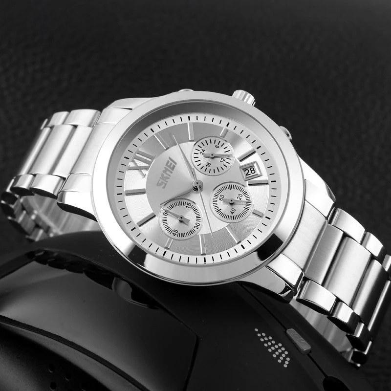 Náramky hodinek Skmei, vyrobené z nejkvalitnější nerezové oceli, v sobě spojují surovou pevnost s poutavou elegancí. Jejich robustní konstrukce je nejen symbolem spolehlivosti, ale také jistotou, že hodinky zůstanou pevně na zápěstí bez ohledu na výzvy dne. Přesné a bezpečné zapínání.