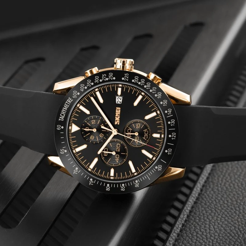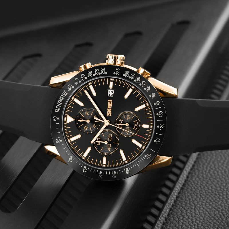 Hodinky Skmei 9253 na silikonovém řemínku odkazují na estetiku exkluzivních modelů sportovních značek, jako jsou TAG Heuer Carrera a Rolex Daytona. Jejich elegantní design podtržený výraznou lunetou a ciferníkem se subciferníky vyzařuje profesionální, sportovní charakter. Nyní můžete mít tento luxusní, osobitý styl na svém zápěstí, aniž byste museli obětovat pohodlí a lehkost silikonového řemínku.