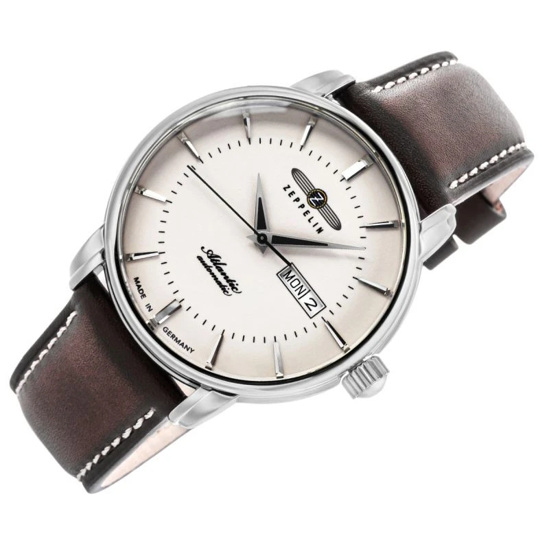 První přelet vzducholodi nad Atlantickým oceánem, symbol odvahy a inovace, se odráží v kolekci hodinek Atlantic. Styl těchto modelů čerpá inspiraci z jedinečné atmosféry interiérů historických vzducholodí a kombinuje nadčasovou eleganci s originální povrchovou úpravou plášťů. Kolekce potěší jak milovníky letecké historie, tak muže, kteří hledají klasiku s nádechem jedinečnosti.