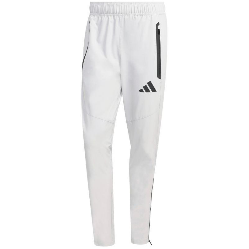 Pánské kalhoty adidas Tiro 26 Travel Woven světle šedé KE8363 Pánské kalhoty adidas Tiro, součást řady Tiro, jsou ideální pro odpočinek mezi tréninky. Rychleschnoucí tkanina v plátnové vazbě. Pravidelný střih. Zúžené nohavice s ergonomickým prošíváním a zipy. Elastický pas. Boční kapsy na zip. Malé logo. Materiál: 87 % recyklovaný polyester, 13 % elastan.