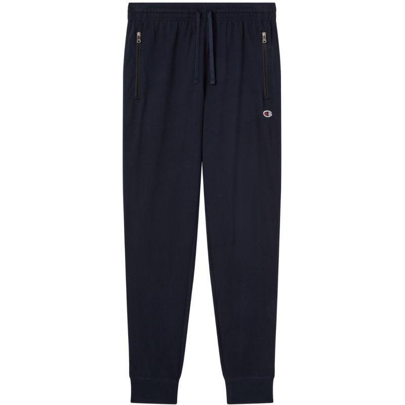Pánské tepláky Champion Rib Cuff Pants navy blue 220807 BS501 Pánské tepláky Champion moderního vzhledu. Přizpůsobený střih. Subtilní logo výrobce. Měkká bavlna. Elastický pas s vnější stahovací šňůrkou. Boční kapsy na zip. Pas s žebrovanými manžetami pro zvýraznění obuvi. Materiál: 100% bavlna.