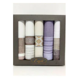 Kapesník z hladké, jemně tkané bavlny, lemovaný úzkým plochým švem, je nepostradatelnou součástí výbavy každého gentlemana. Je znakem elegance a atributem hygieny. Vybírat můžeme z široké škály vzorů a barev. Krásně zabalené budou vhodnou nabídkou na dárek. Sada se skládá z 5 kapesníků. Složení: 100% bavlna, rozměry: 40 cm x 40 cm.