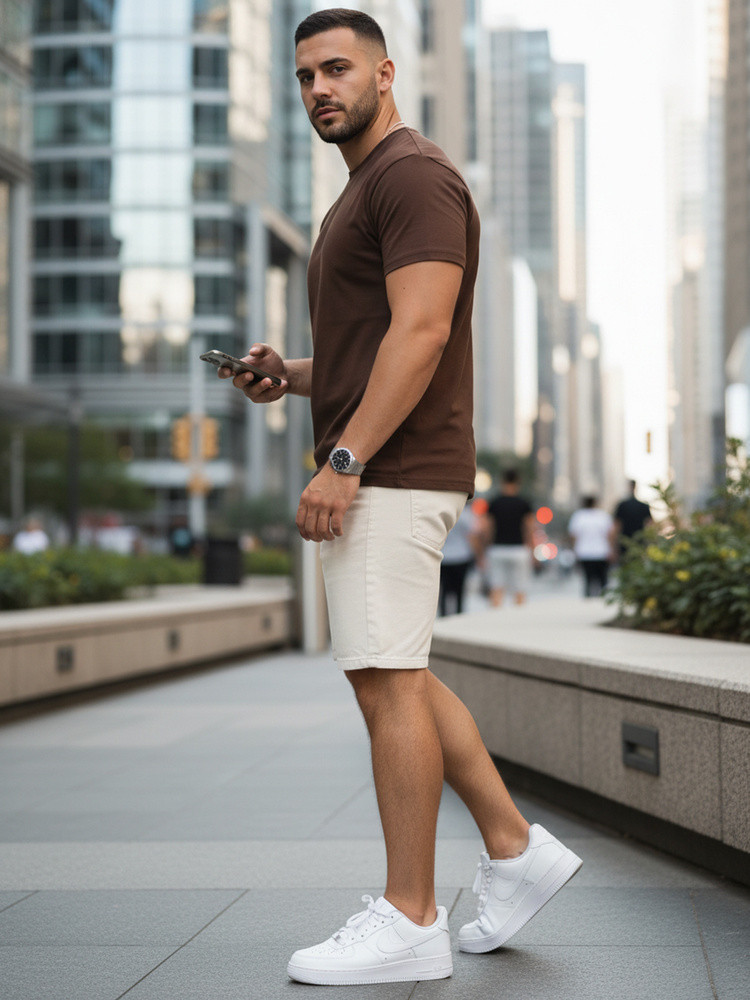 Pánské klasické hnědé tričko FashionStreet RX5679