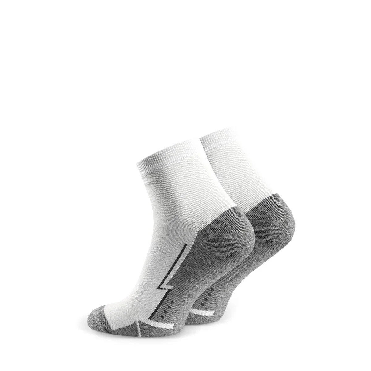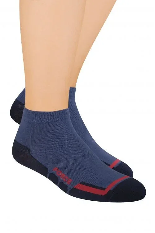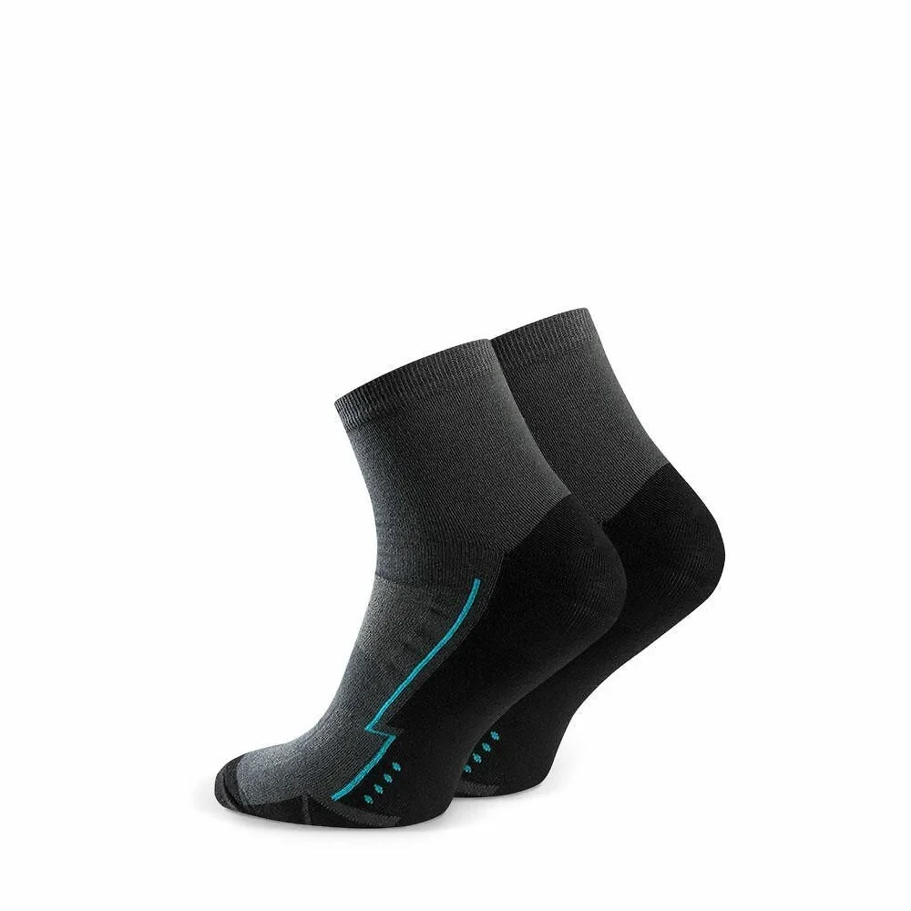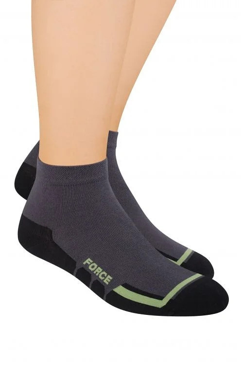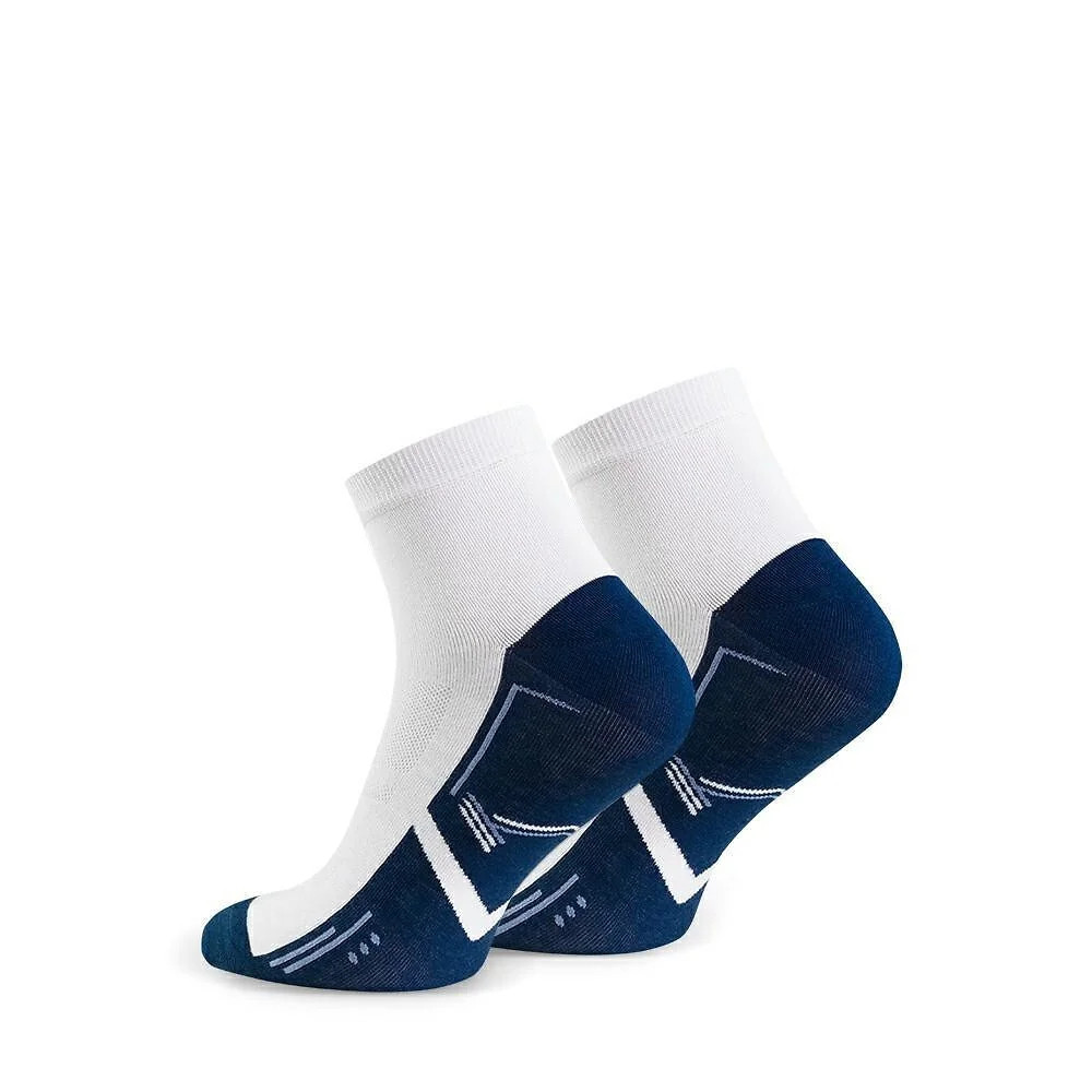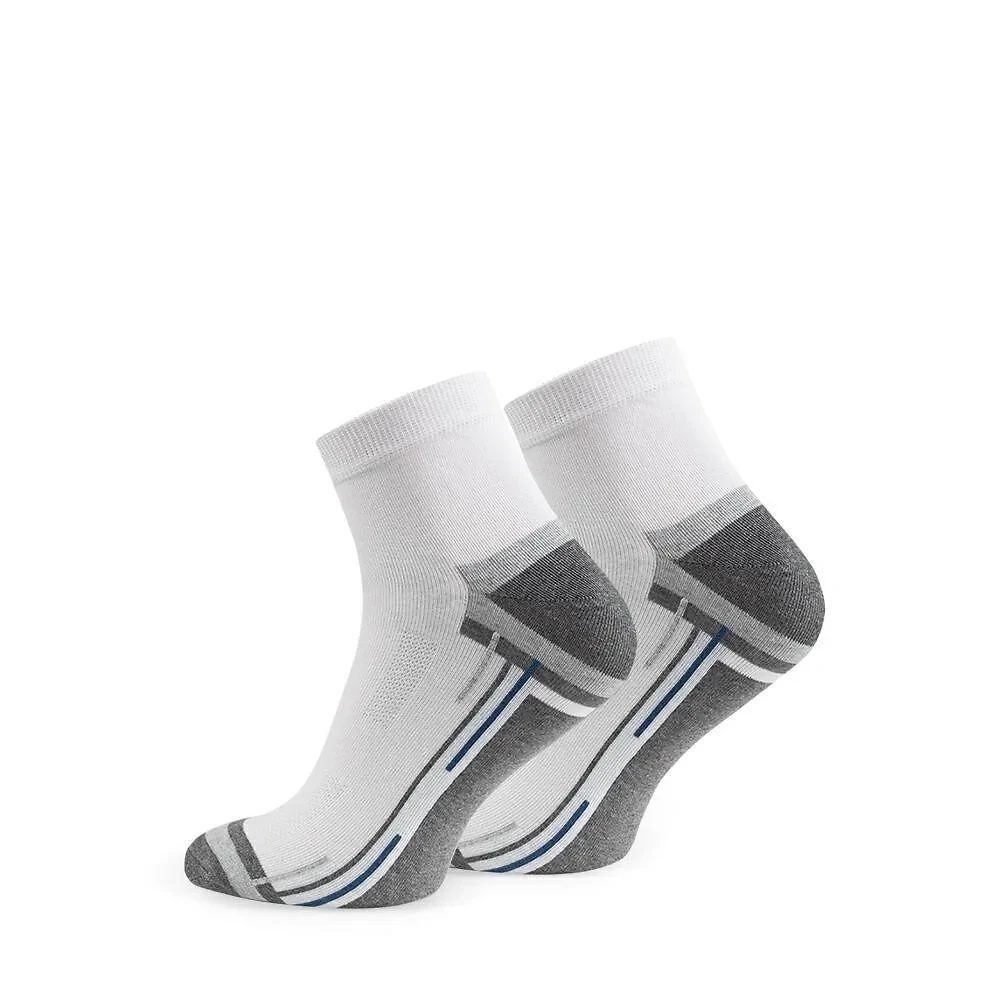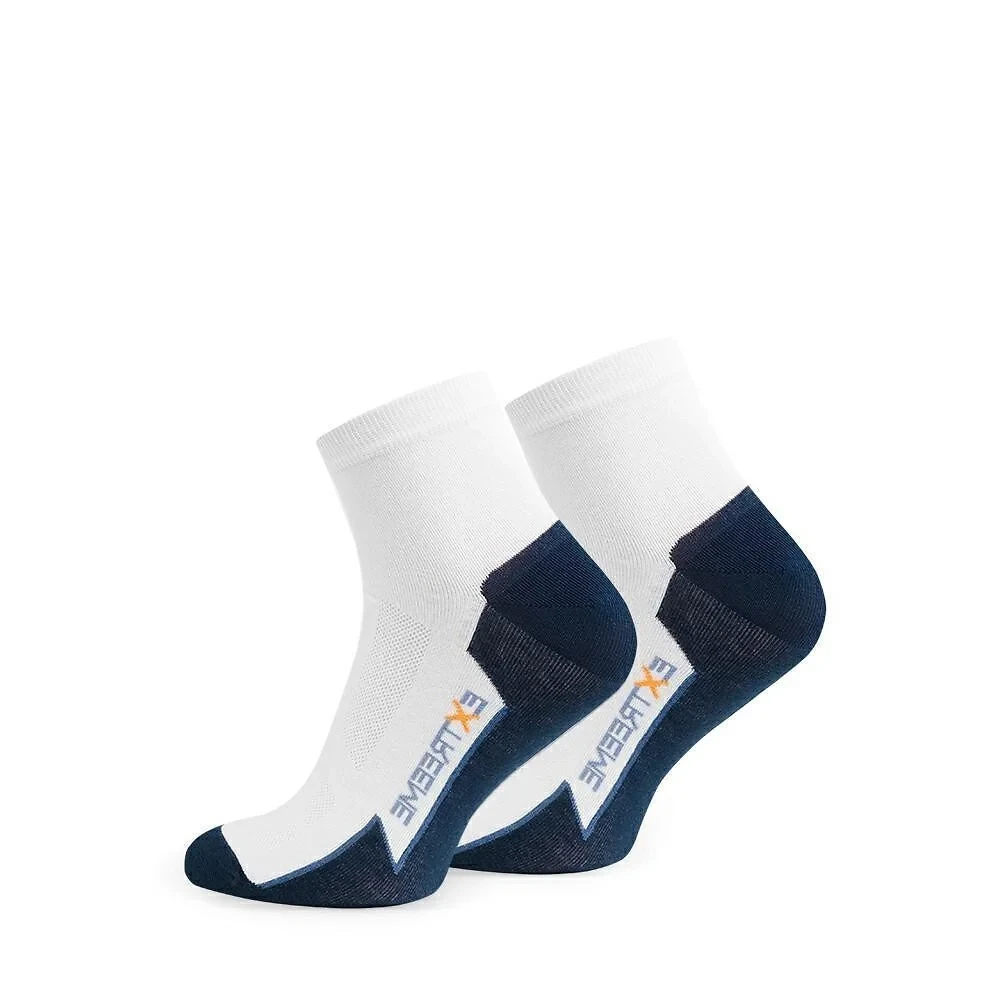 Pánské kotníkové ponožky s přídavkem lycry. Mají ploché švy a nestahující lem. Originální vzor se skvěle hodí ke sportovnímu stylu.