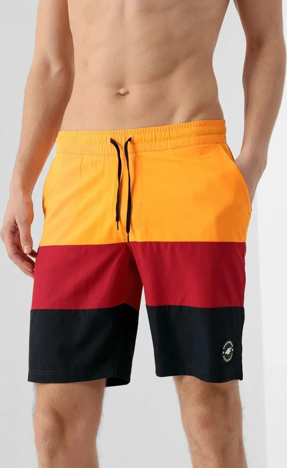 Produkt Pánské koupací šortkyH4L21-SKMT004 oranžovo-červeno-černá - 4F prodáváme v těchto velikostech: M, XXLa barvách oranžová5903609080280, 5903609080310