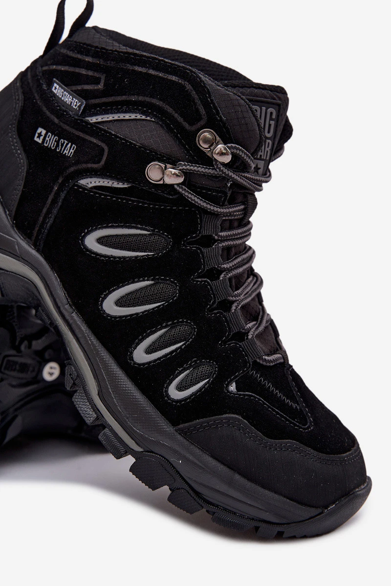 Kvalitní pánské trekové boty Big Star v černé barvě jsou vyrobeny z pravé kůže a vybaveny technologií HI-POLY SYSTEM, která zajišťuje pohodlí, stabilitu a odolnost při každém kroku. Ideální pro náročnější terén i volnočasové aktivity.