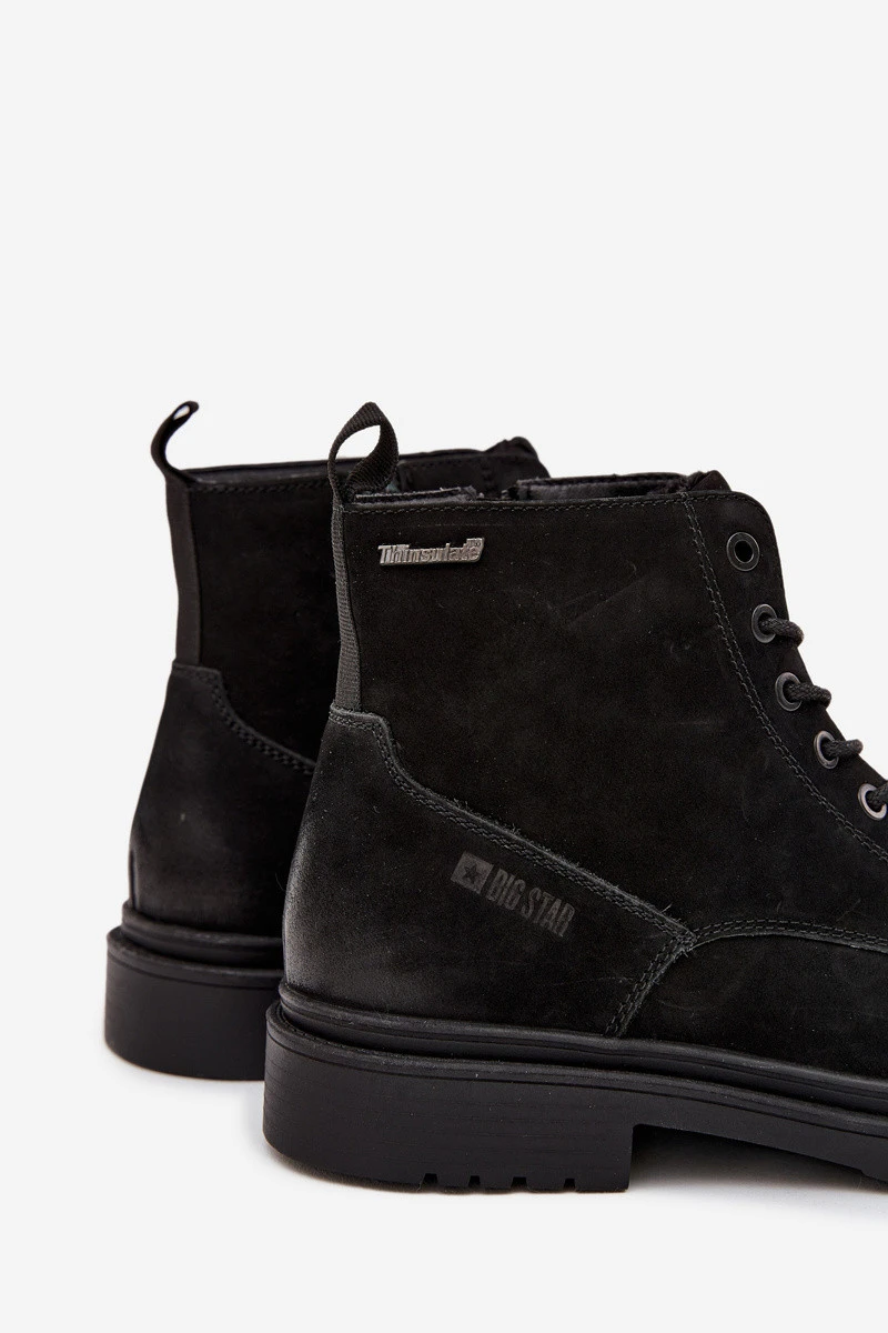Stylové a praktické pánské kotníkové boty Big Star v černé barvě. Vyrobené z kvalitní přírodní kůže a zateplené pro pohodlí v chladném počasí. Boční zip zajišťuje snadné obouvání a odolná podrážka stabilní krok na různých površích.