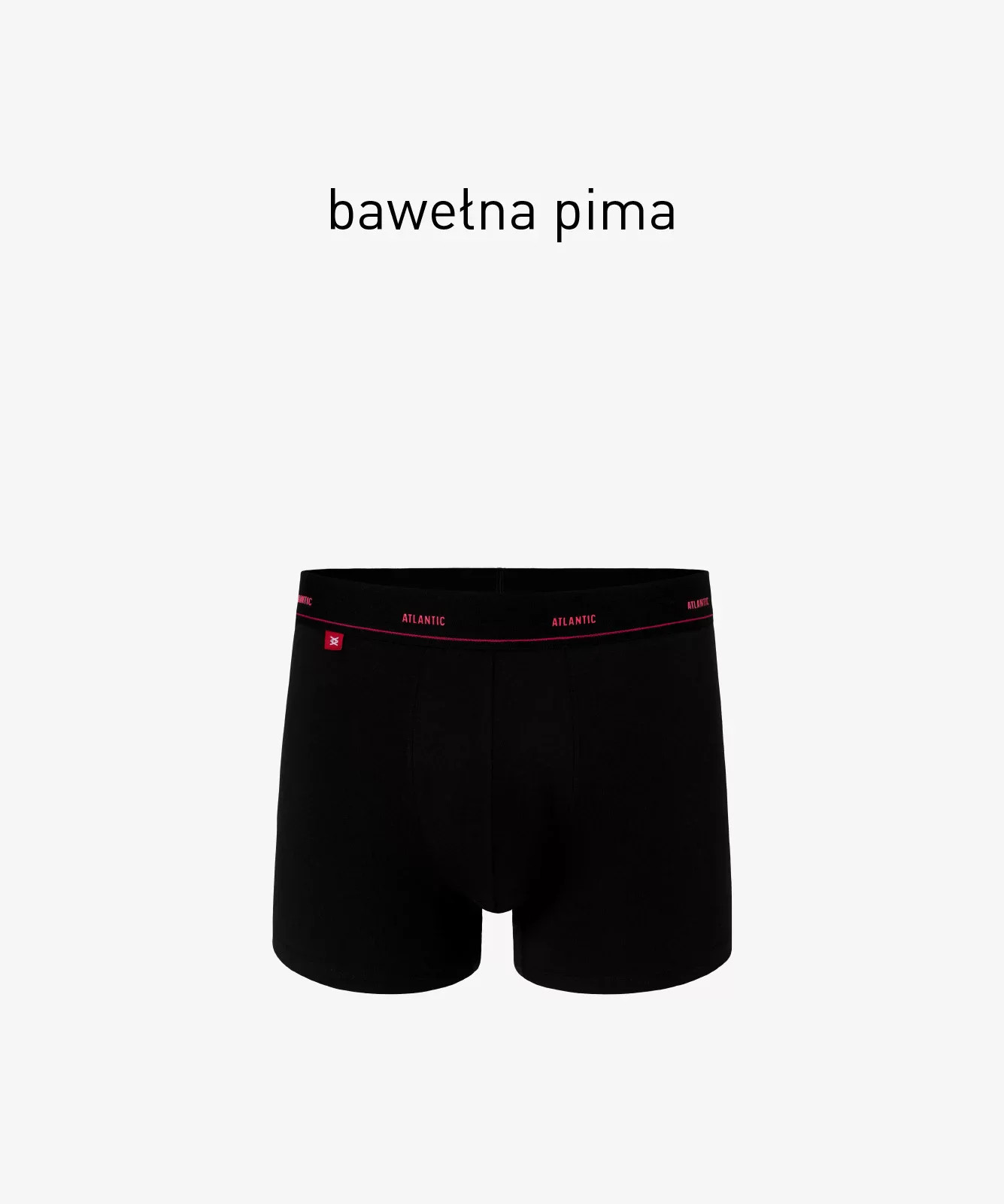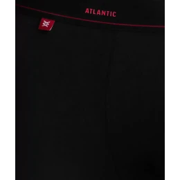 Černé pánské boxerky jsou v pase značeny širokou a měkkou gumou s červenými nápisy ATLANTIC. Boxerky se vyznačují sportovním charakterem - mají univerzální délku nohavic a nízký pas zakončený již zmíněnou vnější gumou. Mimořádně příjemná na dotek guma nestlačuje tělo a nezpůsobuje tak nepohodlí.Boxerky jsou vyrobeny z pleteniny, která je kombinací jemné pima bavlny, tenkého a hedvábného modalu a pružného elastanu. Jedná se o kombinaci šetrnou k pokožce, která je prodyšná, zabraňuje nadměrnému pocení a nevyvolává alergické reakce.Spodní prádlo poskytuje nejvyšší komfort nošení.