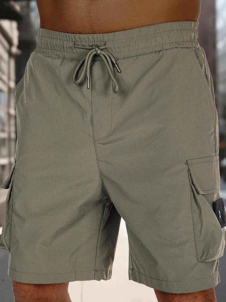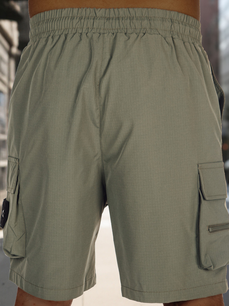 Pánské bojové šortky z látky příjemné na dotek jsou ideální volbou pro teplejší dny. Model je vybaven elastickým pasem se zavazováním pro větší pohodlí a ozdobnými kapsami na přední straně a na bocích pro uložení nezbytností. Moderní nádech dodává ozdobný zip. Ideální na léto a jaro.