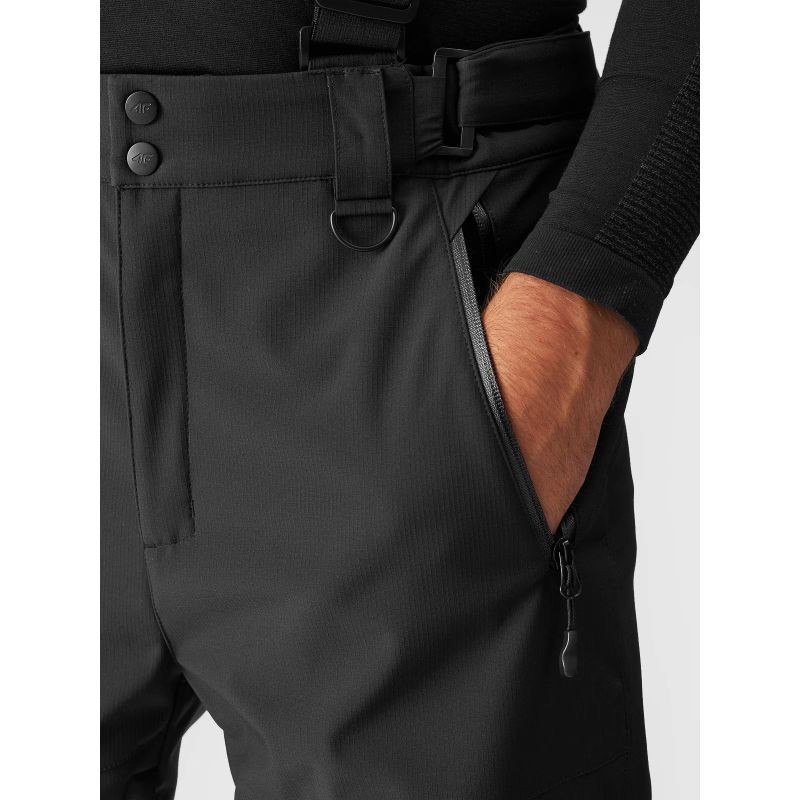 Pánské zimní kalhotyse 2 kapsami na zip na bocích a další kapsou na zip na nohavici. Lyžařské kalhoty mají také systém větrání se skrytým zipem pod nápletem na vnitřní straně stehen. Pásek s trojitým zapínáním na zip, suchý zip a patentku. Poutka na pásek pro nošení dalšího pásku nebo připevnění drobného příslušenství. Tvarovaná oblast kolen pro pohodlí při používání. Kovový háček na přední straně pásku pro připevnění například klíčů. Panely z ripstopové tkaniny odolné proti roztržení. Odnímatelné, nastavitelné šle. Zapínání na suchý zip a patentku na vnitřní straně nohavice proti sněhu zabraňuje pronikání chladu a sněhu.