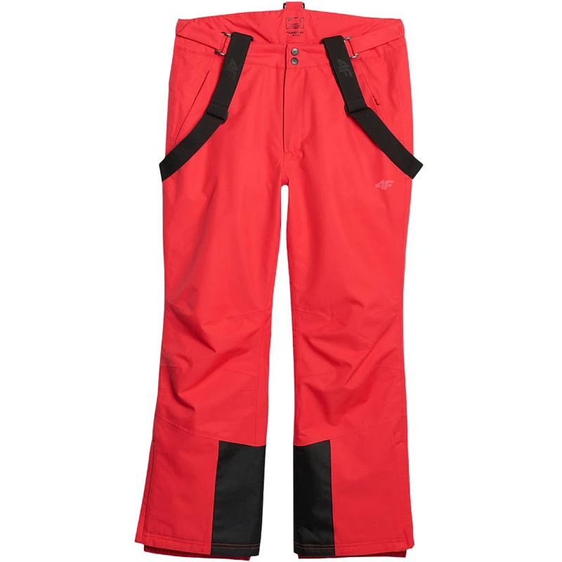 Spodnie narciarskie męskie 4F FNK M1155 czerwone 4FWAW25TFTRM1155 62S Spodnie narciarskie męskie 4F sprawdzą się w zmiennych warunkach pogodowych zapewniając pełną swobodę ruchów. Dane techniczne:· Materiał główny: 100% poliester· Materiał dodatkowy: 100% poliester· Podszewka: 100% poliester· Wypełnienie: 100% poliester (ocieplina poliestrowa)· Poziom wodoodporności membrany: 5 000 mm· Poziom oddychalności membrany: 3 000 g· Membrana 4F NeoDry 5000/3000 - zapewnia wodoodporność i oddychalność, chroniąc przed lekkim deszczem i śniegiem· Hydrofobowa impregnacja - zabezpiecza materiał przed wchłanianiem wilgoci· Klejone szwy całkowite - chronią przed przedostawaniem się wilgoci do wnętrza· Ocieplina poliestrowa - zapewnia optymalny komfort cieplny bez nadmiernego obciążenia· Zapinany, regulowany pas - łączy zapięcie na zamek, rzep i napy oraz regulację na rzepy dla wygodnego dopasowania· Odpinane, regulowane szelki - pozwalają na indywidualne dopasowanie i możliwość szybkiego zdjęcia· Wentylacja na udach – system z zamkami po wewnętrznej stronie ud wspiera termoregulację podczas intensywnego ruchu· Wzmocnienia u dołu nogawek - zwiększają trwałość w miejscach narażonych na uszkodzenia· 2 kieszenie boczne na zamek - zabezpieczają drobiazgi podczas aktywności· Profilowane kolana - poprawiają swobodę ruchu na stoku· Wewnętrzne nogawki przeciwśnieżne - skutecznie chronią przed śniegiem wpadającym do środka· Boczne zamki u dołu nogawek - ułatwiają zakładanie na buty narciarskie· Elementy odblaskowe - zwiększają widoczność· Gładka podszewka - zapewnia komfort noszenia i łatwe zakładanie· Regularny krój - wygodnie dopasowuje się do sylwetki, nie krępuje ruchów· Nogawki pełnej długości - sięgają za kostkę i chronią nogi na całej długości· Średni stan - dla komfortowego dopasowania do pasa