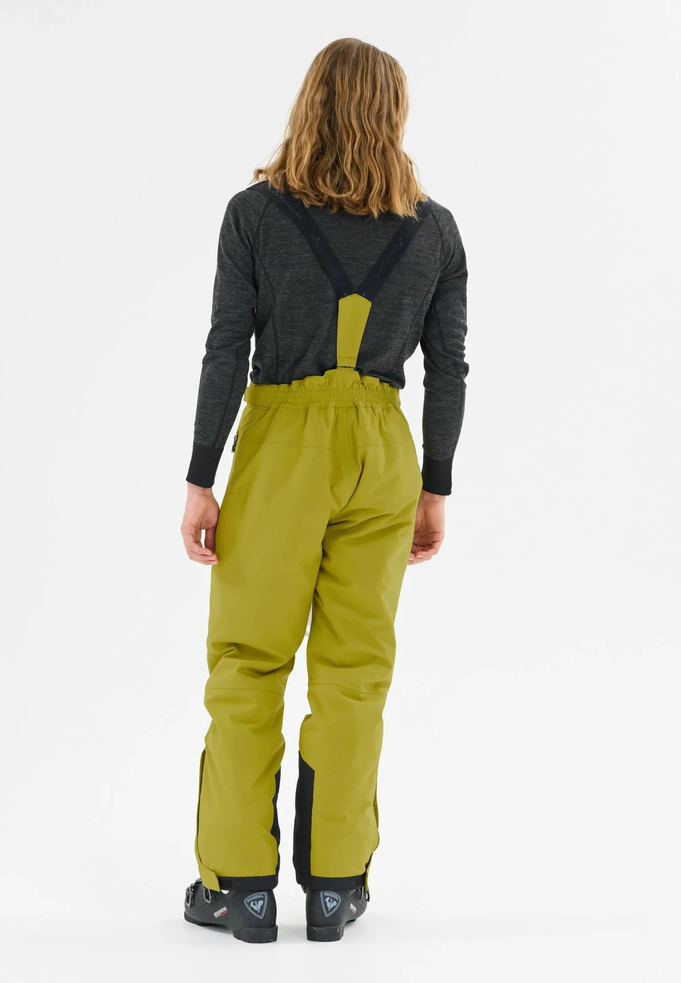 Nastavitelný pas a odepínací šle umožňují pohodlné přizpůsobení postavě, zatímco možnost úpravy šířky nohavic zaručuje komfort i při nošení s lyžařskou obuví.