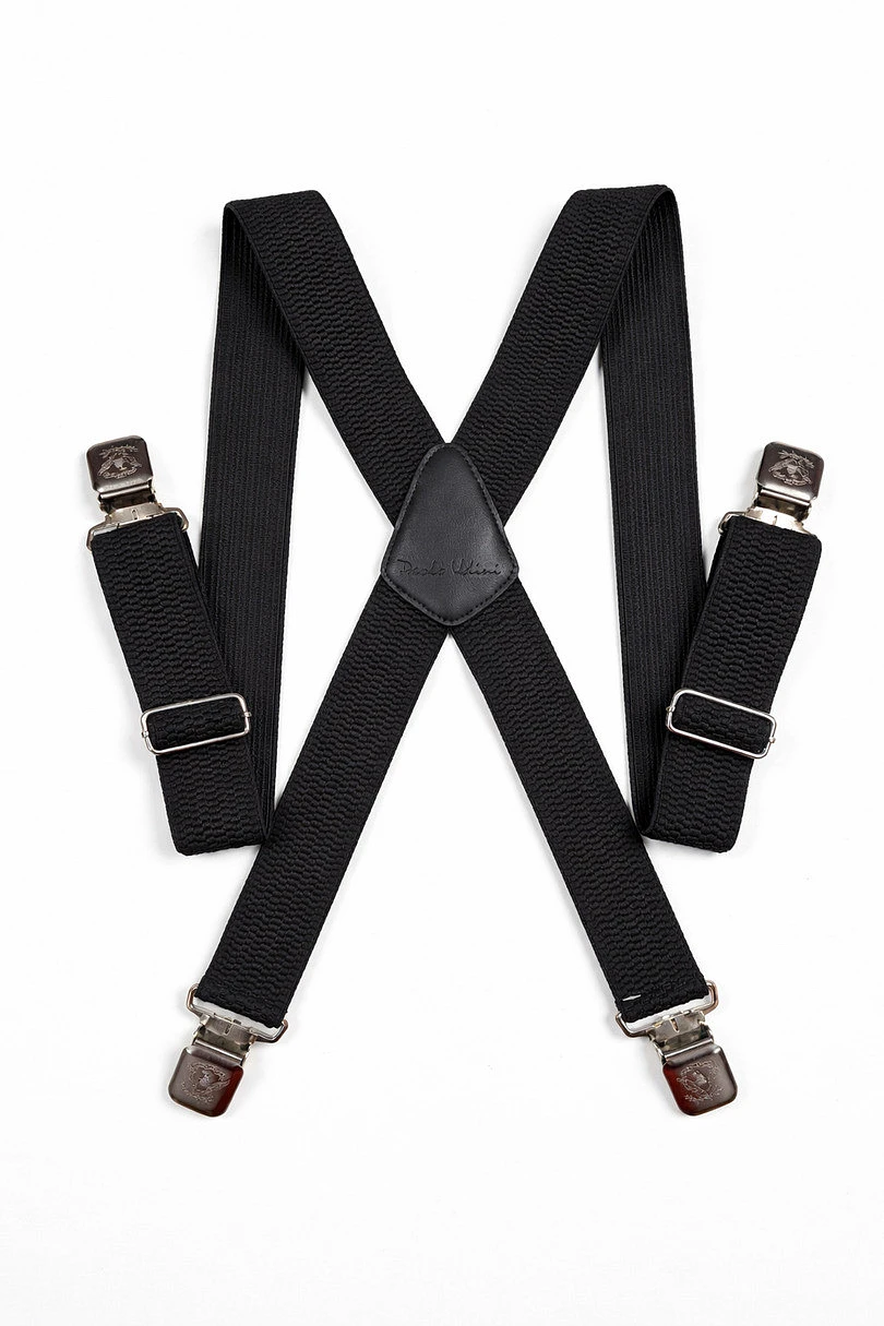 Vysoce kvalitní pánské šle vyrobené ze 4 cm široké elastické galantní gumy jsou dokonalou kombinací pohodlí a elegance. Díky své pevné konstrukci dokonale podepírají kalhoty a zajišťují pohodlné nošení po celý den. Jsou vybaveny silnými ocelovými žabkami, které zaručují bezpečné a stabilní zapínání bez rizika sklouznutí. Stylové spoje z ekologické kůže podtrhují klasický charakter výrobku, takže jsou dokonalým doplňkem formálního i neformálního oblečení.