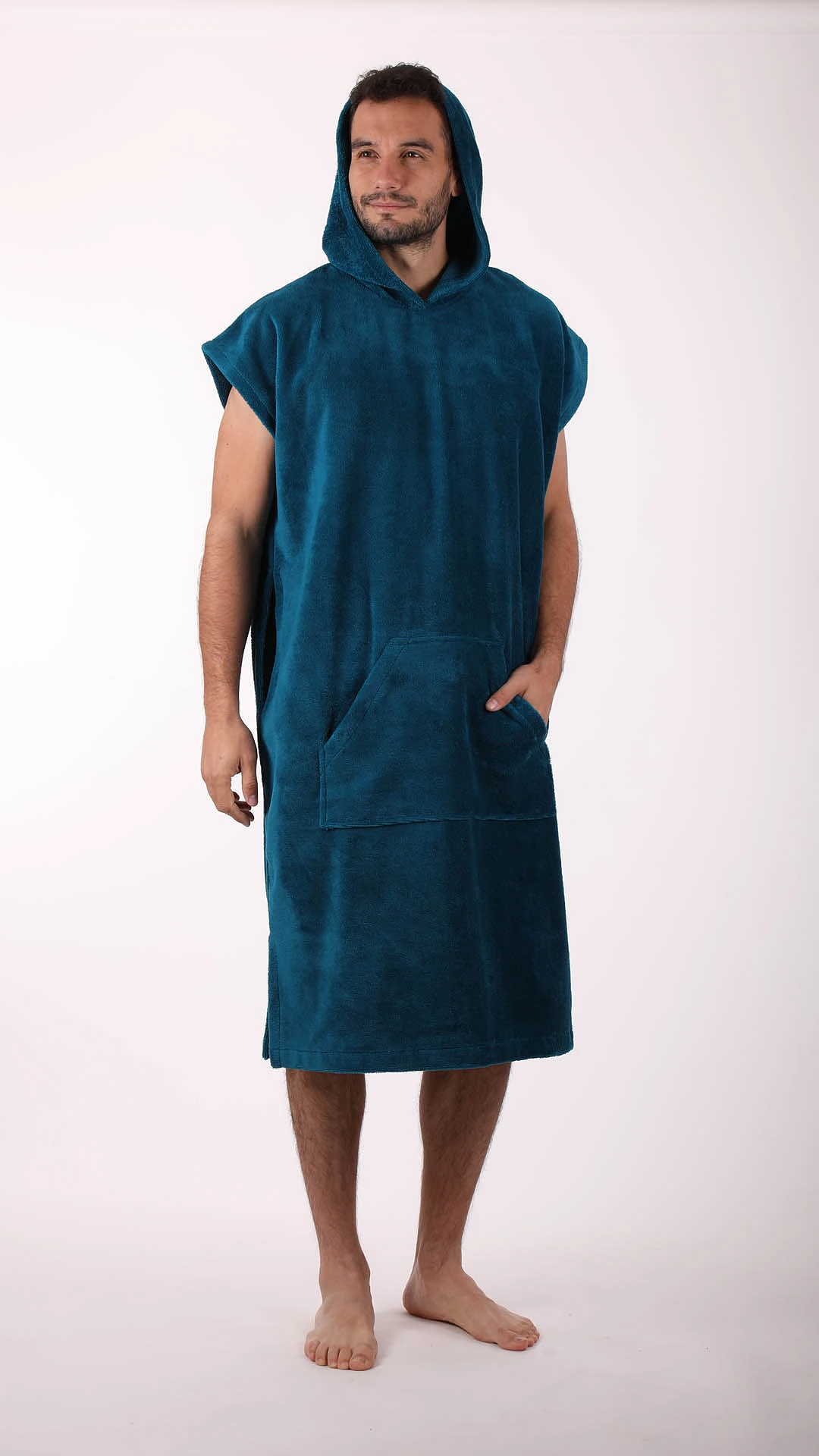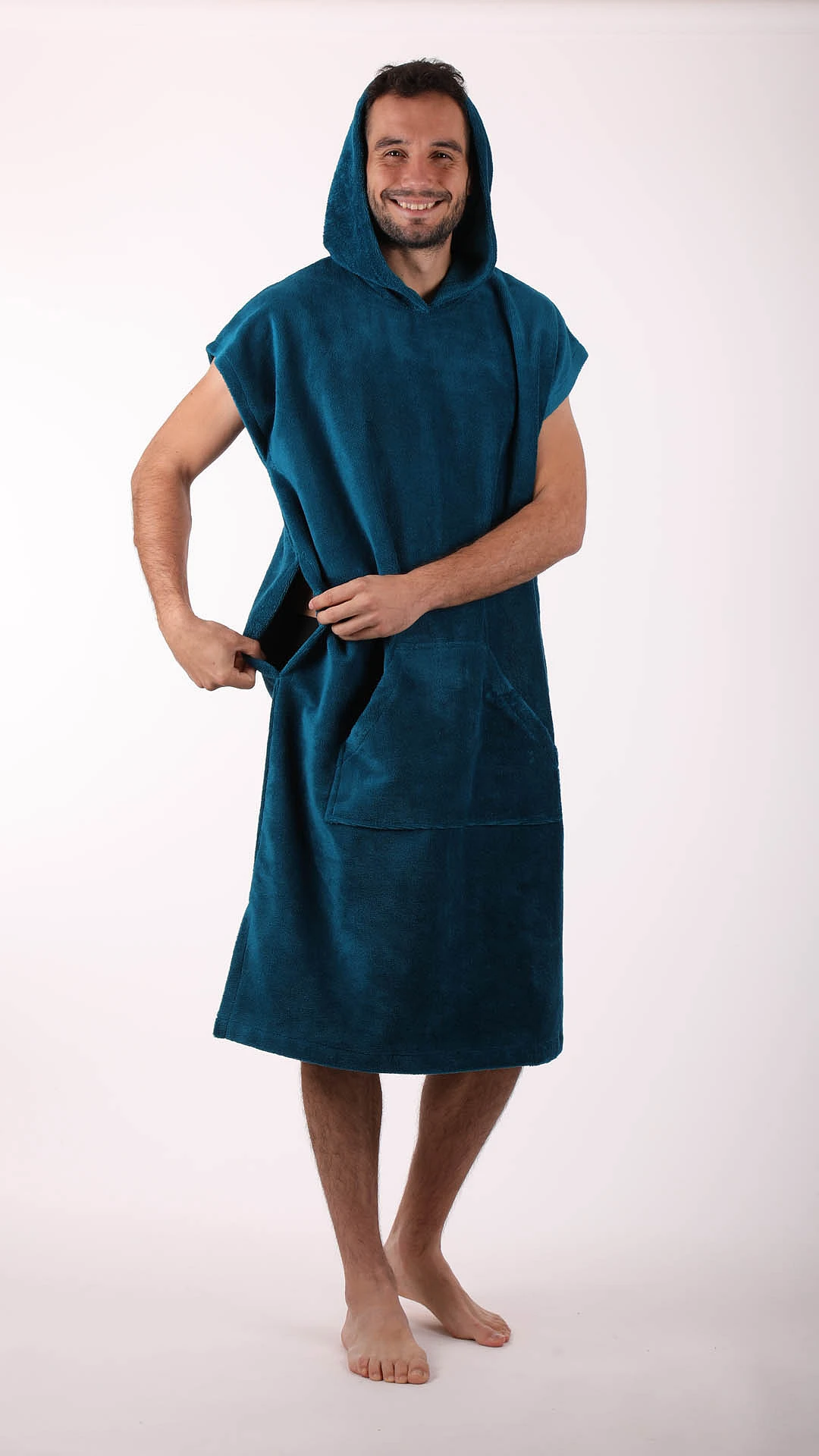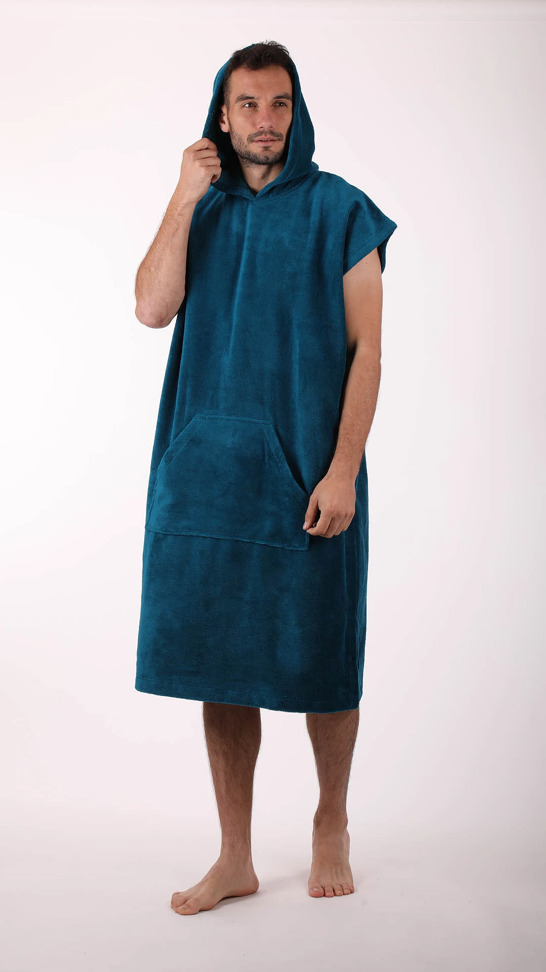 Díky této kombinaci je pončo lehké, příjemné na dotek a praktické pro každodenní použití ve wellness.