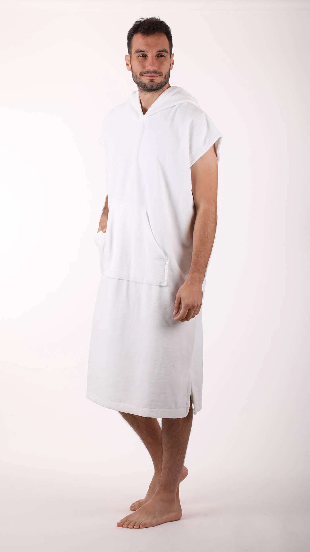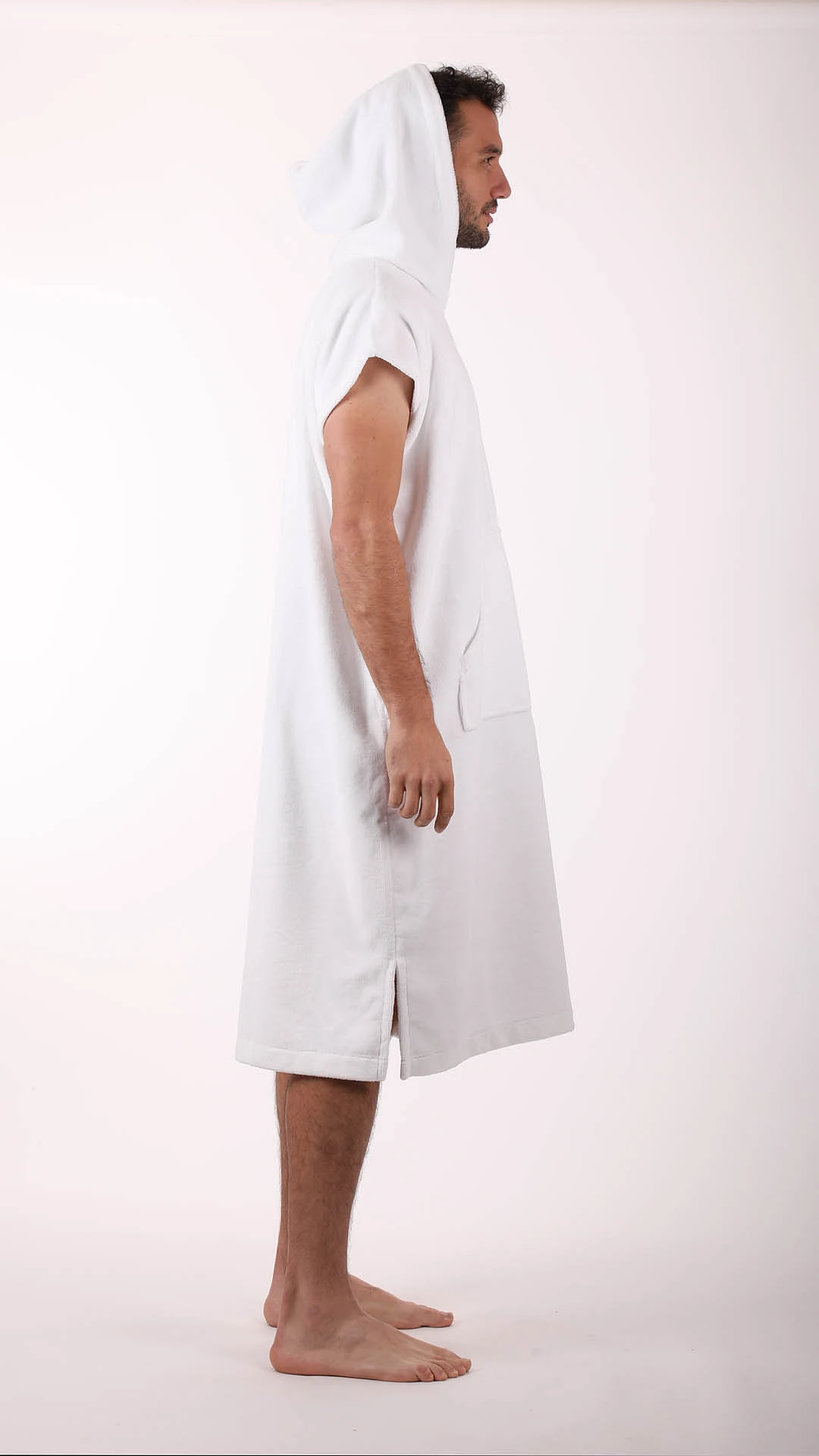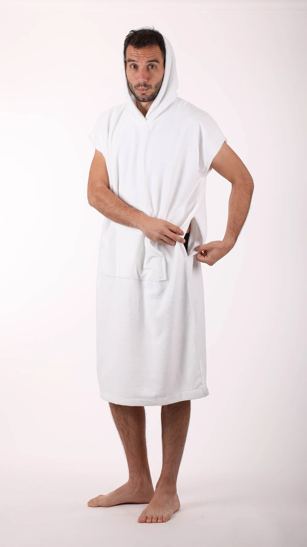 Volný střih s kapucí a velkou kapsou poskytuje pohodlí při odpočinku ve wellness, sauně i doma.