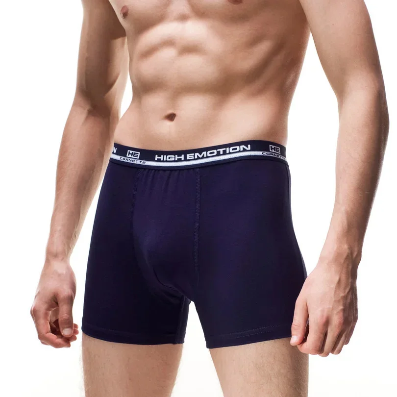 Pánské Boxerkyky High Emotion jsou ideální jako dárek pro milovaného muže, zvýrazňují jeho charakter a styl. Jsou ušité z kvalitní bavlny s přídavkem elastanu. Boxerkyky mají plochou gumu, prostorný klín, ploché švy a nestahující nohavičky. Jemně obepínají tělo.
