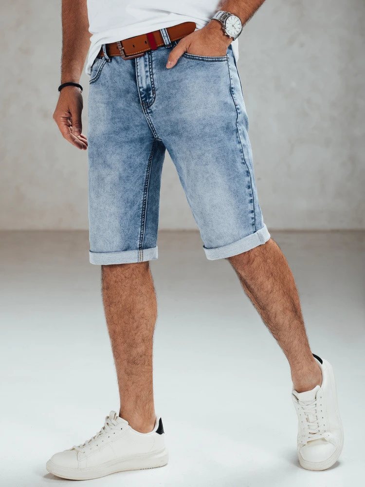 Pánské ohrnuté džínové šortky jsou spolehlivou volbou pro teplé dny. Jsou vyrobeny z lehké džínoviny a zaručují pohodlí a prodyšnost. Klasický střih s pěti kapsami a praktickým zapínáním na knoflíky se dobře hodí pro každodenní styling, ideální pro jarní a letní měsíce.