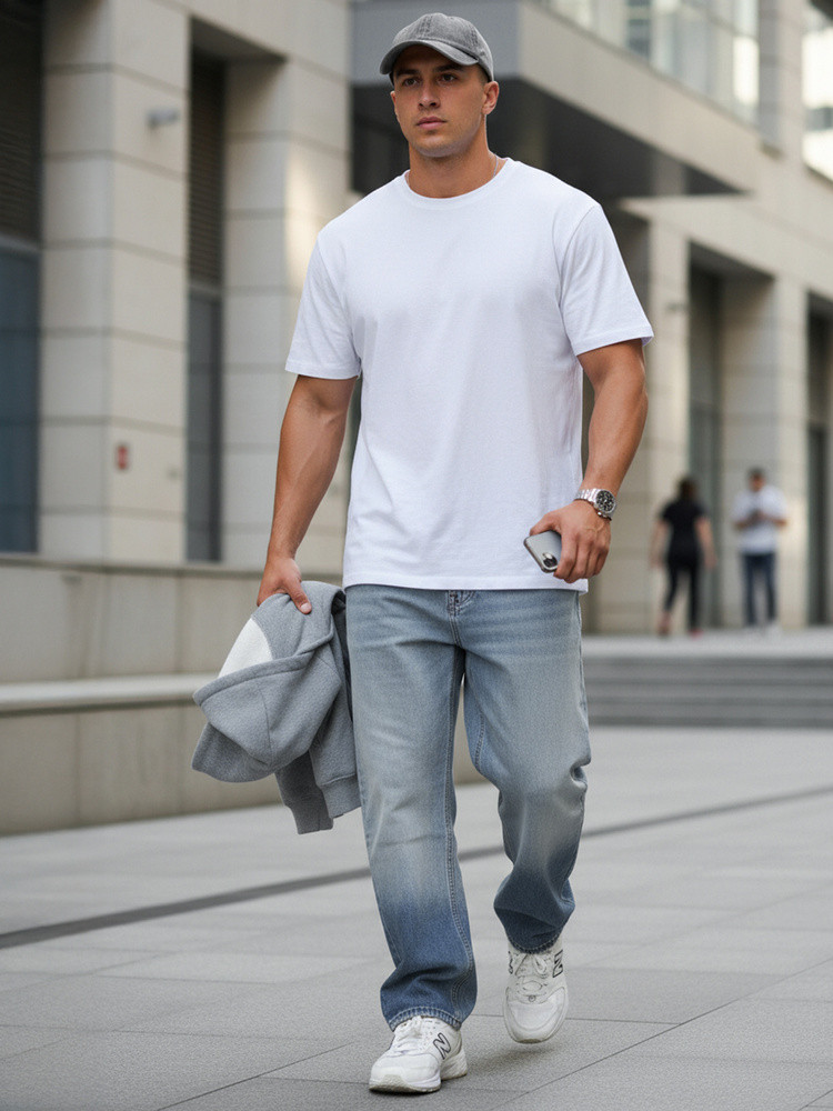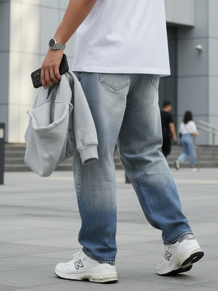 Pánské džíny s ležérním, klasickým střihem, které se dokonale hodí ke každodennímu, městskému stylingu. Jsou vyrobeny ze 100% bavlny a poskytují přirozené pohodlí a dobrou prodyšnost. Světlý odstín džínoviny s jemným stínováním dodává celkovému vzhledu moderní, lehce ležérní nádech.