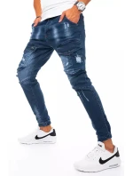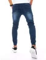 Dámské džínové kalhoty v tmavě modré barvě, rovné nohavice, zapínání na knoflík a zip.