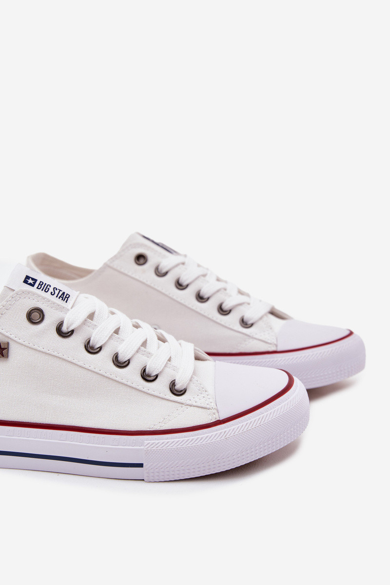 Stylové bílé tenisky Big Star jsou perfektní volbou pro každodenní nošení i volnočasové aktivity. Jejich nízký střih a lehký textilní svršek zajišťují maximální pohodlí i během celodenního nošení. Klasické šněrování umožňuje individuální přizpůsobení, zatímco kontrastní logo Big Star na jazyku a patě dodává obuvi charakteristický městský styl. Gumová podrážka je flexibilní a protiskluzová, takže se na ni můžete spolehnout v každé situaci.