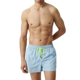 Pánské plavky 222 blue Atlantic - světle modrá barva - neónové odstín - v pase šňůrky k zavazování v kontrastní barvě - na bocích kapsy - krátké nohavice - rychleschnoucí a stálý materiál - logo Atlantic
