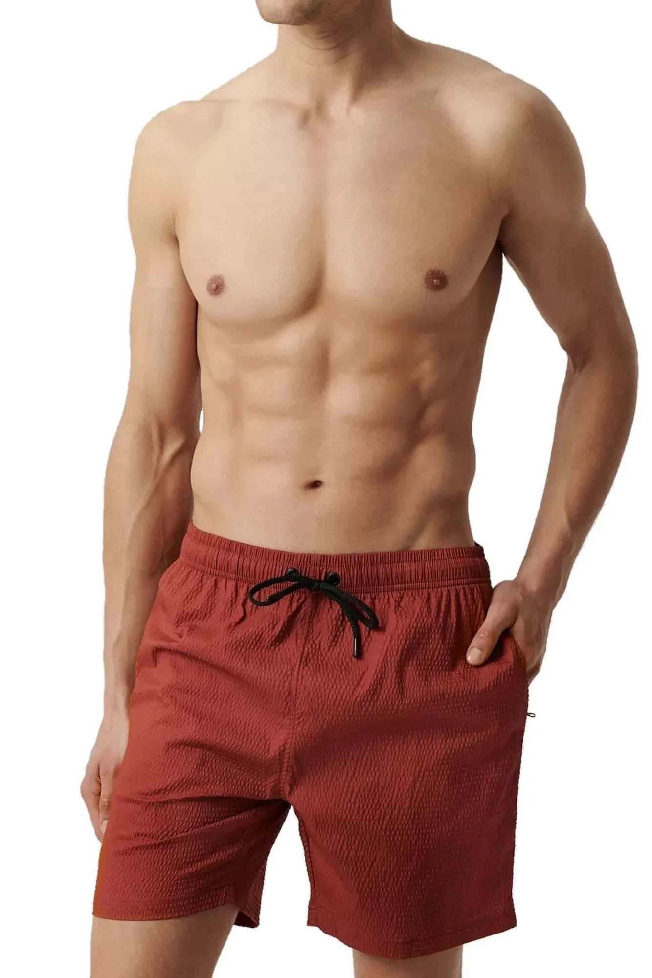 Pánské plavky 226 cinnamon Atlantic - skořicová barva - materiál s technologií 4 way stretch - v pase šňůrky k zavazování - na bocích a vzadu kapsy - rychle schnoucí materiál