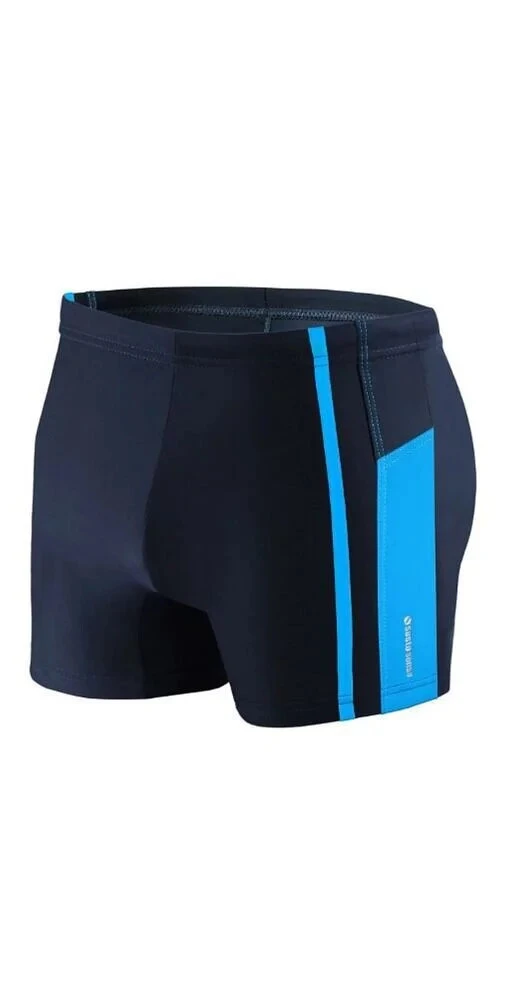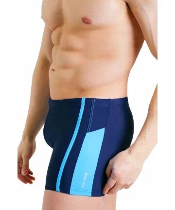 Pánské plavky s nohavičkou mladistvého střihu z kolekce Sesto Senso. Plavky jsou v tmavěmodré barvě a zdobené jemnou kontrastní pružkou přes boky. Velmi oblíbený střih. V pase mají širokou gumu s provlečenou tkaničkou v tunýlku pro lepší úpravu velikosti. Přední díl je cely podšitý, aby neprosvítal. Na levém boce při okraji je natištěný nápis s logem výrobce.