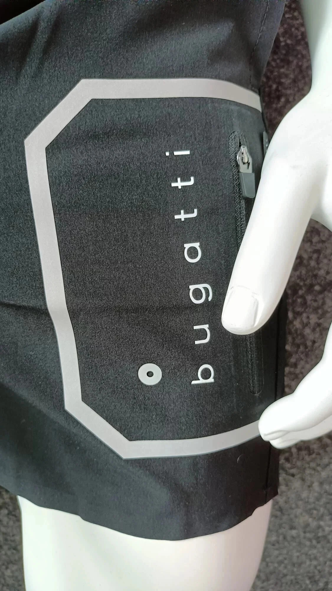- na boku reflexní nápis značky Bugatti