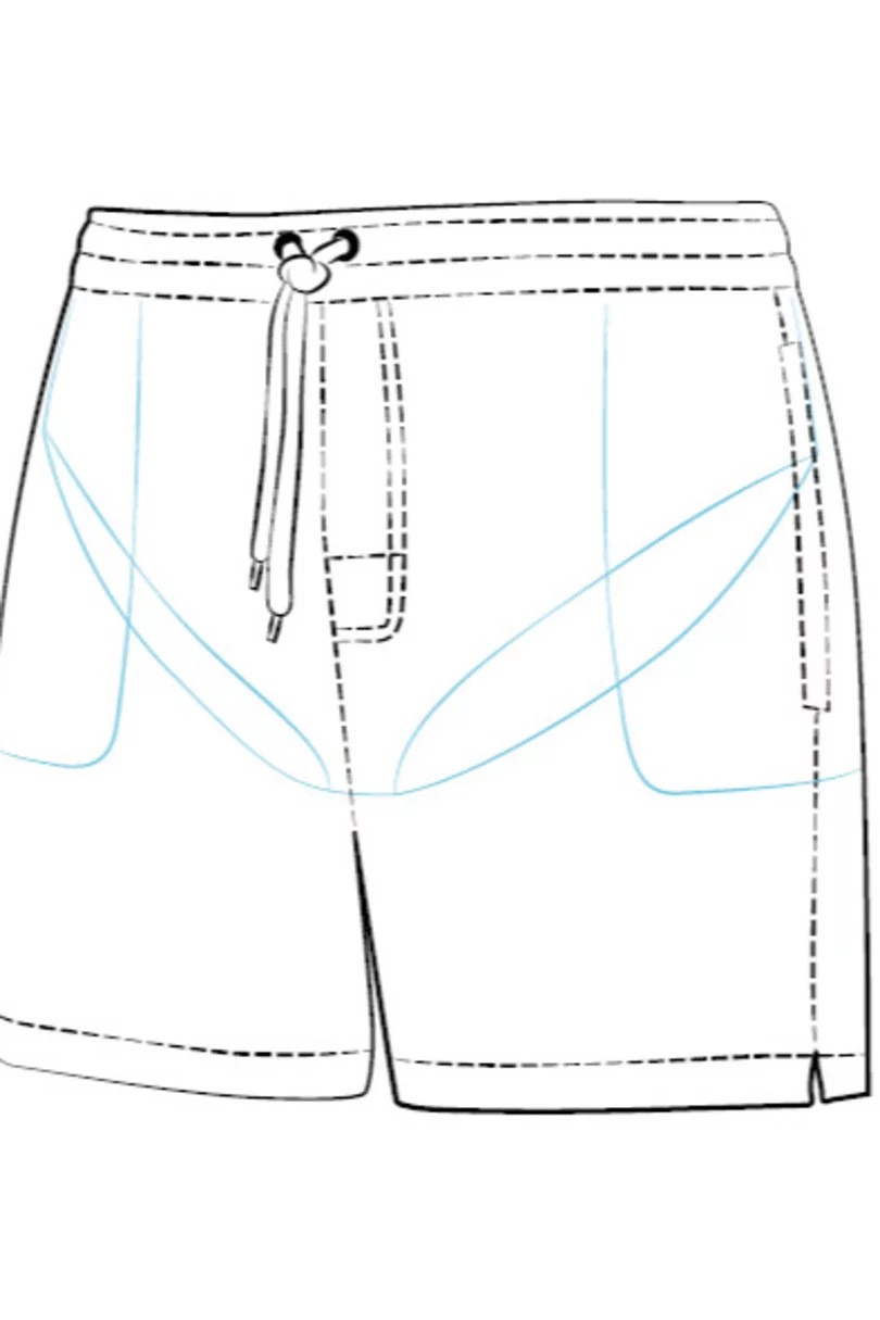 Šortky mají volný střih, jsou vyrobené z tenké, vzdušné tkaniny s rychleschnoucími schopnostmi. Nechybí praktická kapsa na straně a jedna s klopou v zadní části uzavíratelná pomocí suchého zipu. Vnitřní část šortek je z prodyšné síťoviny, má střih slipů.