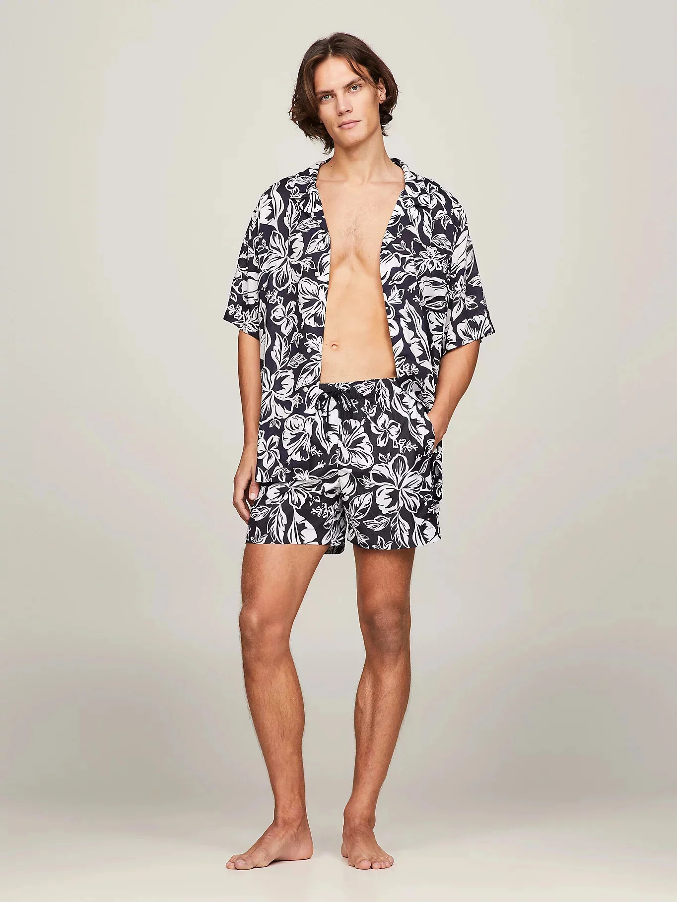 Pánské plavky UM0UM03271 0K8 černobílý vzor - Tommy Hilfiger