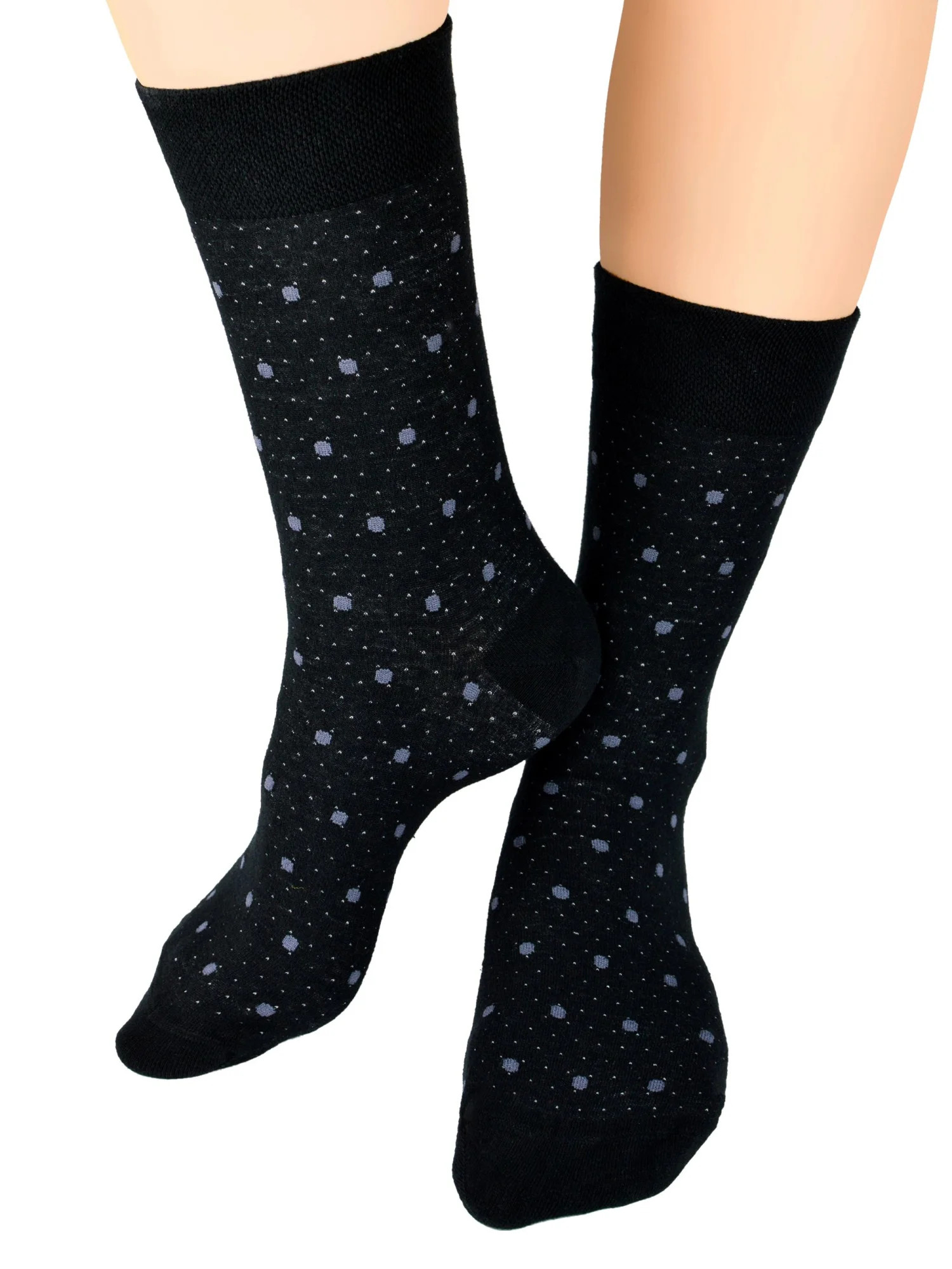 Pánské ponožky 006 M08 NOVITI - černá barva - z vysoce jakostní bavlny - se vzorem - ploché švy - netlaková manžeta pro maximální komfort a pohodlí - universální délka - vhodné k obleku i elegantní obuvi