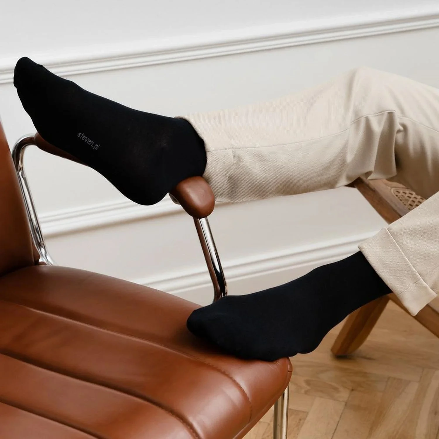 Pánské ponožky 056 100 Steven - černá barva - z vysoce jakostní bavlny - z pružných přízí - netlačí - vhodné ke společenským oblekům