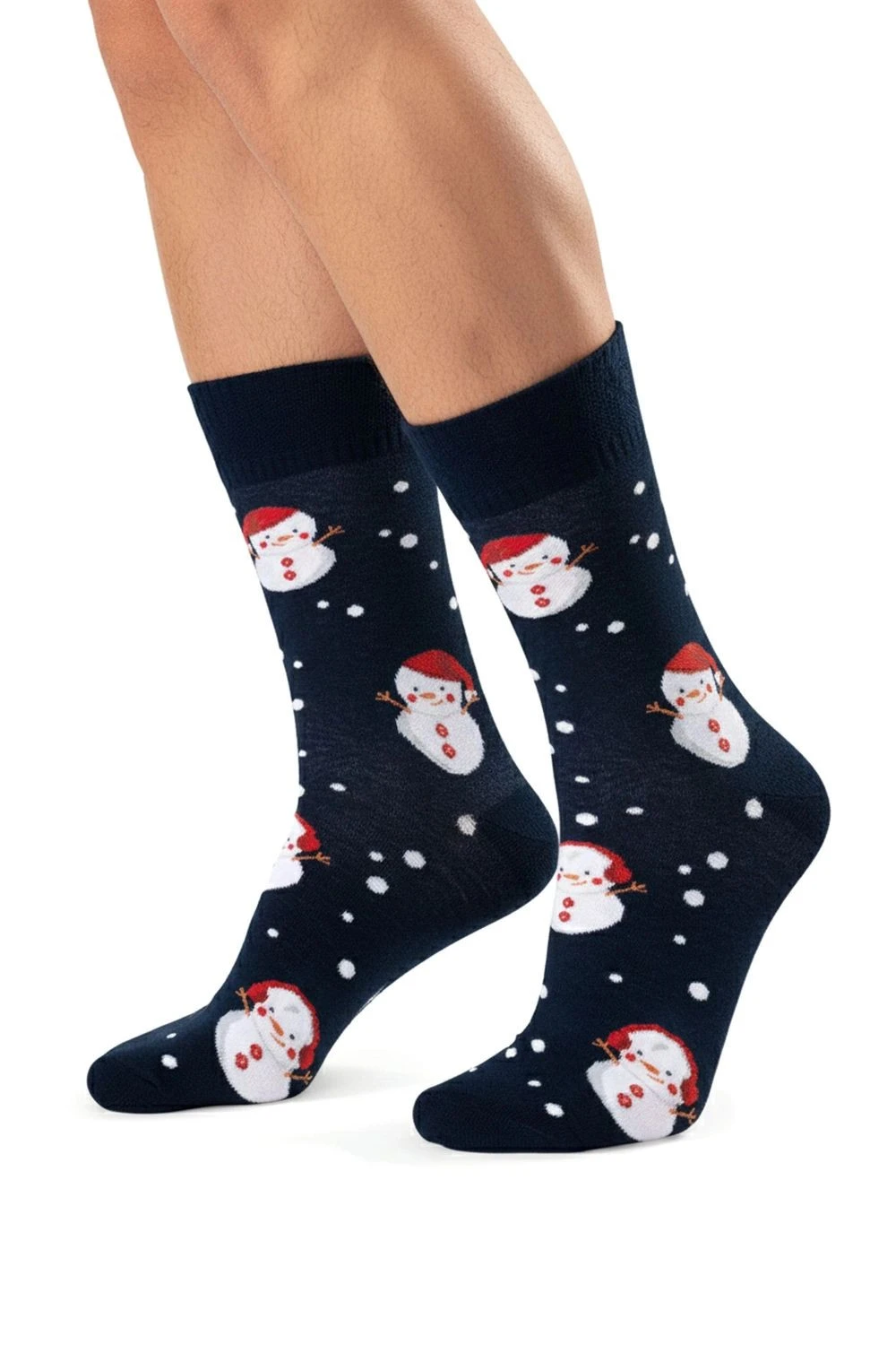 Pánské ponožky 136 164 Steven - tmavě modrá barva - z vysoce jakostní bavlny - s protiskluzovou podešví - měkké, teplé, pohodlné a ideální pro chladné dny - vánoční kolekce
