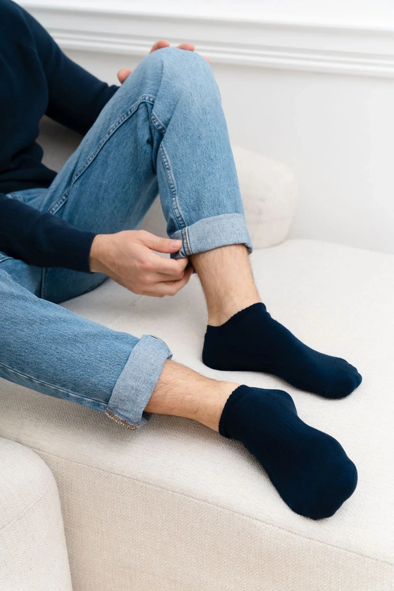 Pánské ponožky 157 dark blue Steven - tmavě modrá barva - z vysoce jakostní americké froté bavlny SUPIMA - nízké kotníkové ponožky - měkké a odolné - díky manžetě a bezešvým švům jsou pohodlné při nošeníMateriálové složení: 88% bavlna + 11% polyamid + 1% elastan
