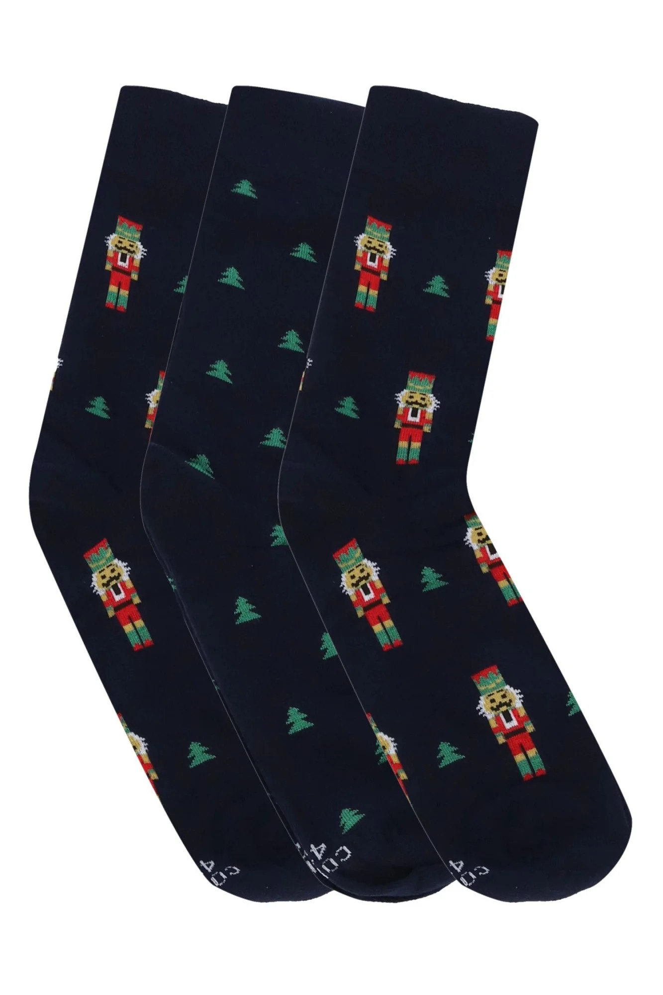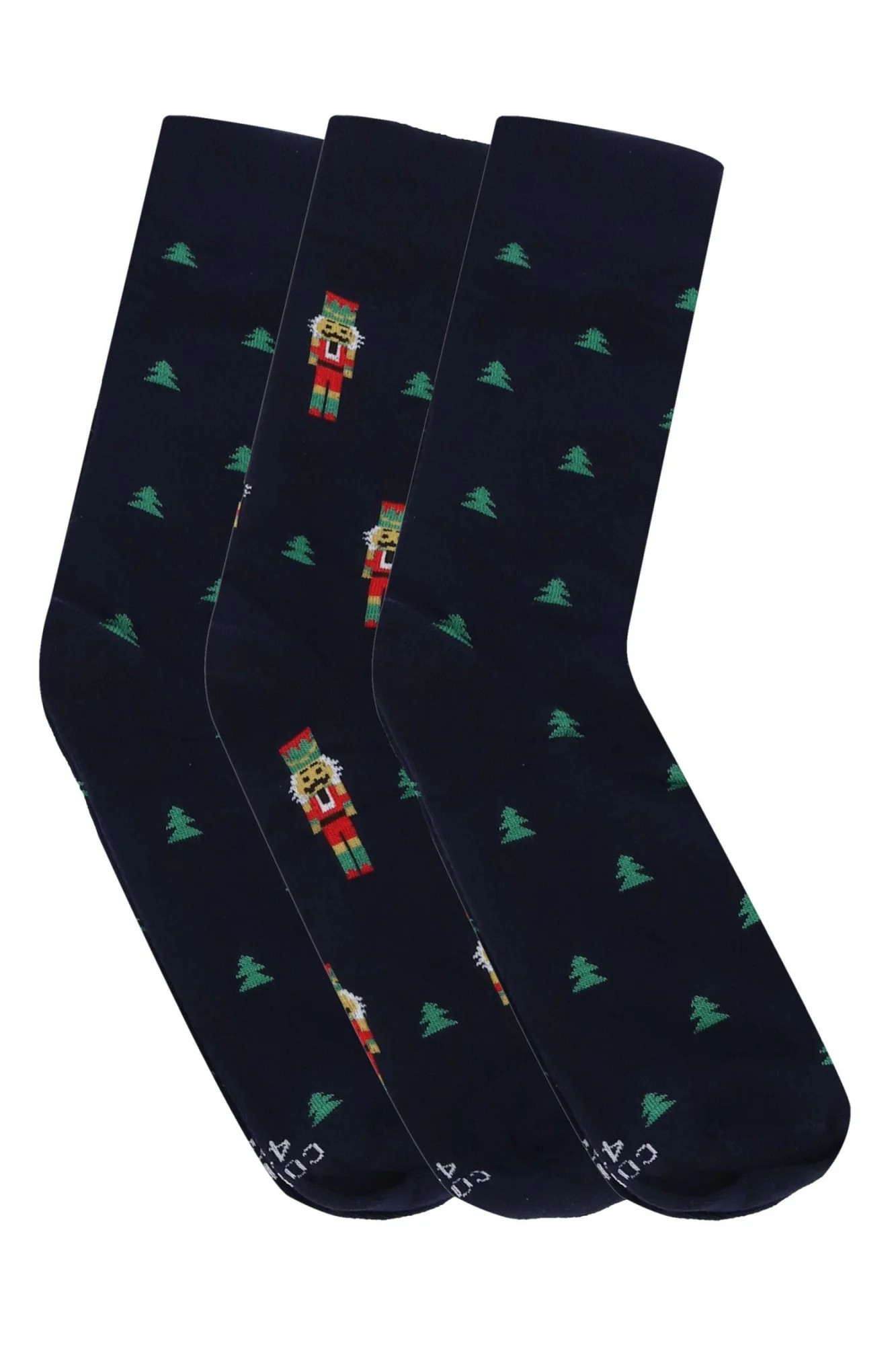 Pánské ponožky 3 pack Premium 3 pack Christmas blue CORNETTE - tmavě modrá barva - z vysoce jakostní bavlny - 3 kusy různých vzorů - ploché švy - netlačí