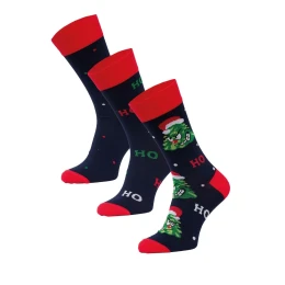 Bavlněné vzorované pánské ponožky s vánočními motivy, balené v krabičce po 3 párech.
