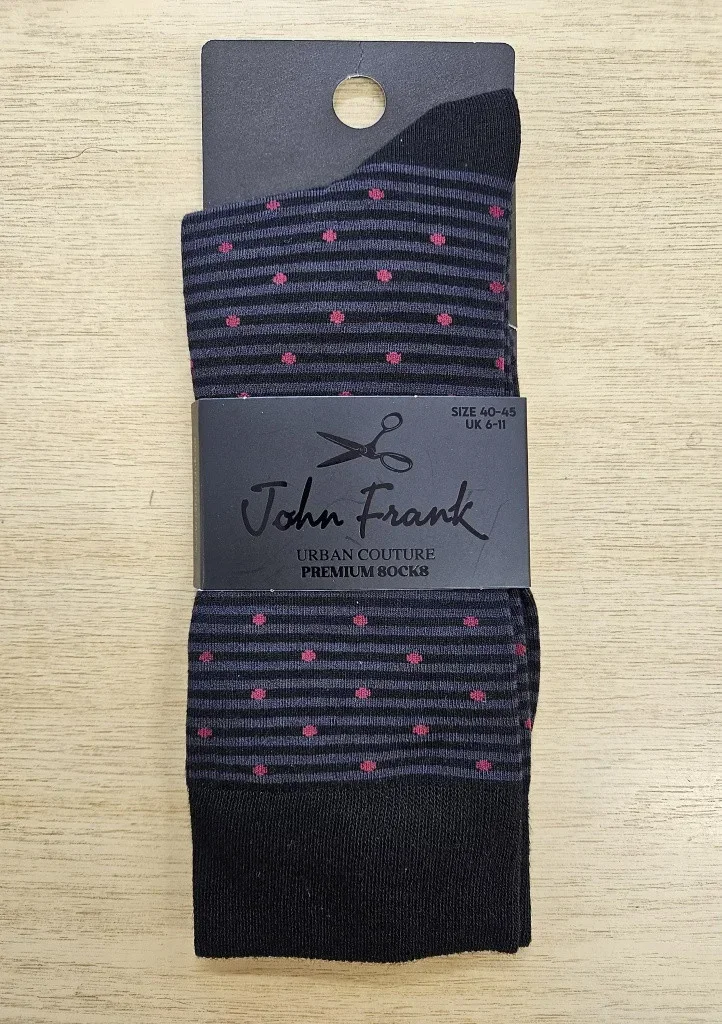 Pánské vyšší ponožky JOHN FRANK jsou vyrobeny z velice příjemného modalu. Ponožky jsou pohodlné, netáhnoucí a dobře se formující kolem nohy. Ponožky jsou prodyšné a v horní části ukončené netáhnoucím lemem. Velikost ponožek je univerzální, a to od velikosti 40 až po velikost 45.
