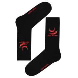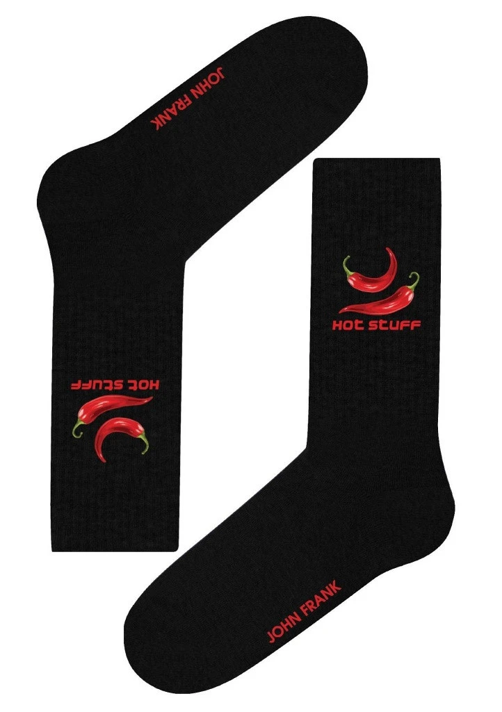 Pánské sportovní ponožky JOHN FRANK jsou vyrobeny z velice příjemného modalu. Ponožky jsou pohodlné, netáhnoucí a dobře se formující kolem nohy. Ponožky jsou prodyšné a v horní části ukončené netáhnoucím úzkým lemem. Z vnější strany je obrázek chilli papriček. Velikost ponožek je univerzální, a to od velikosti 40 až po velikost 45.