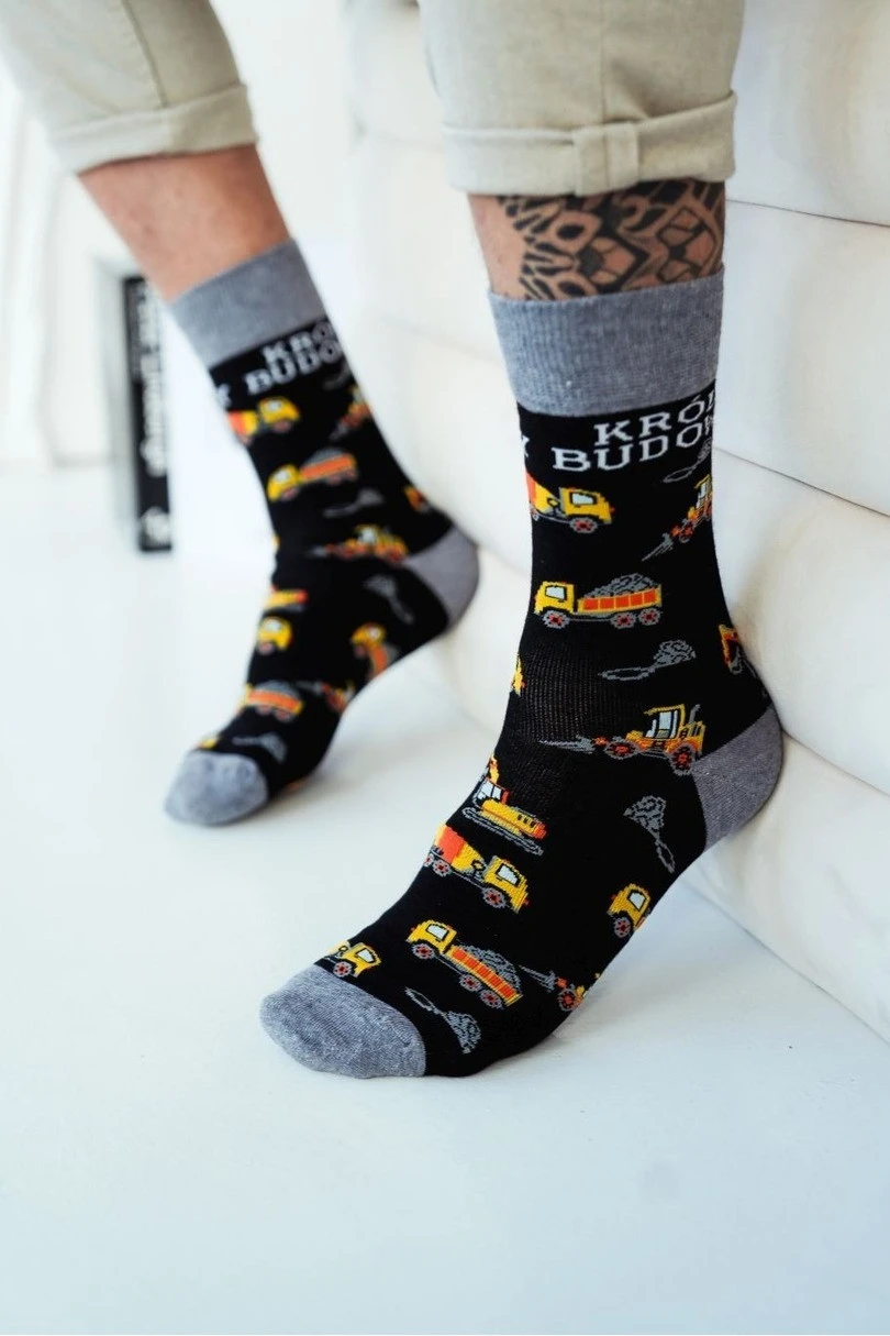 Skarpetki męskie KRÓL BUDOWY 0125.061 to stylowy dodatek, który podkreśli charakter każdego mężczyzny. Wykonane z wysokiej jakości bawełny, zapewniają komfort noszenia przez cały dzień — idealne zarówno do pracy, jak i na co dzień. Oryginalny wzór „KRÓL BUDOWY” nadaje im wyjątkowego charakteru i wyróżnia wśród tradycyjnych skarpet. Doskonałe jako prezent dla fana budownictwa lub praktyczny element garderoby.