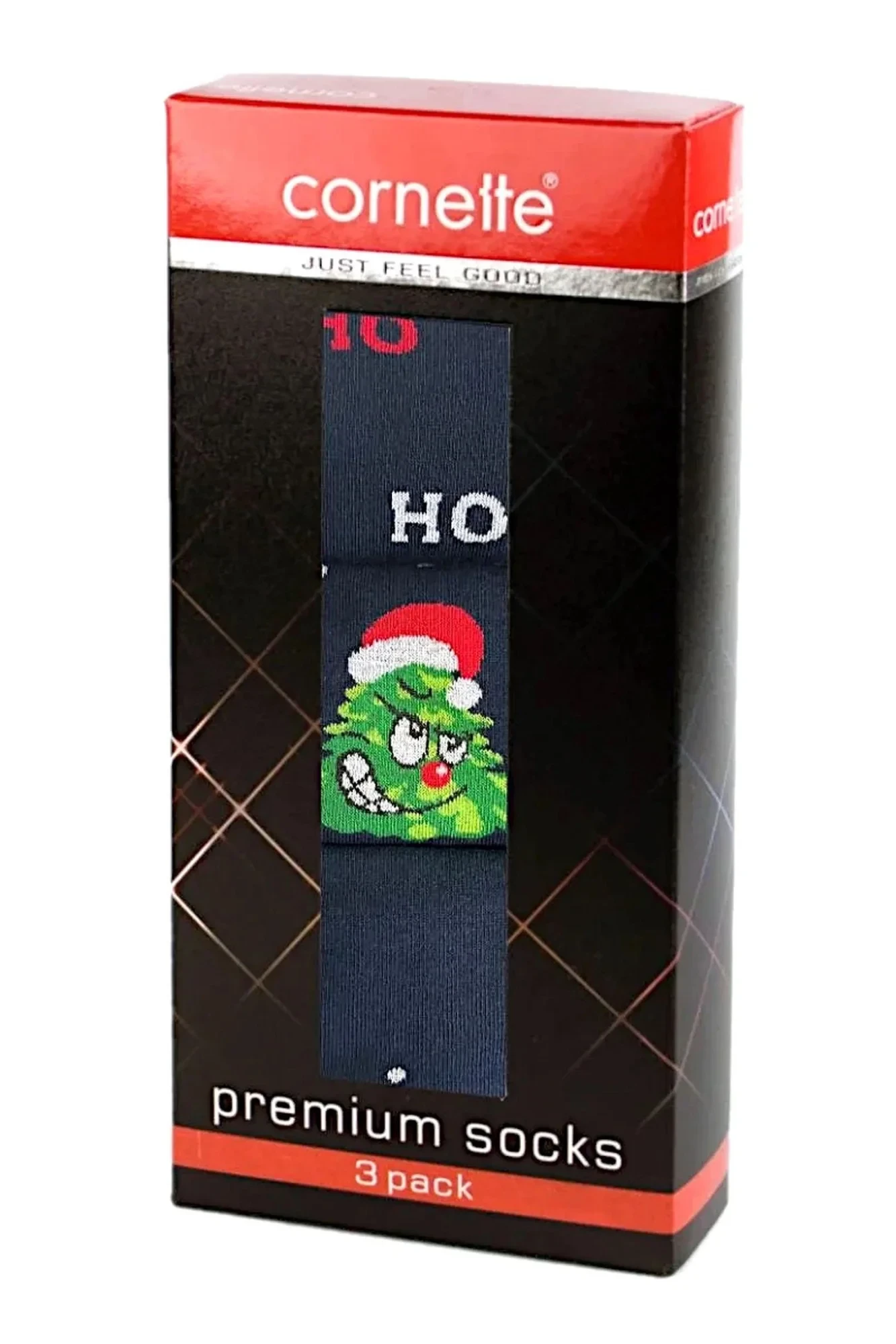 Pánské ponožky A62 Premium CORNETTE - tmavě modrá barva - z vysoce jakostní bavlny - 3 kusy různých vzorů - ploché švy - netlačí - vánoční kolekce