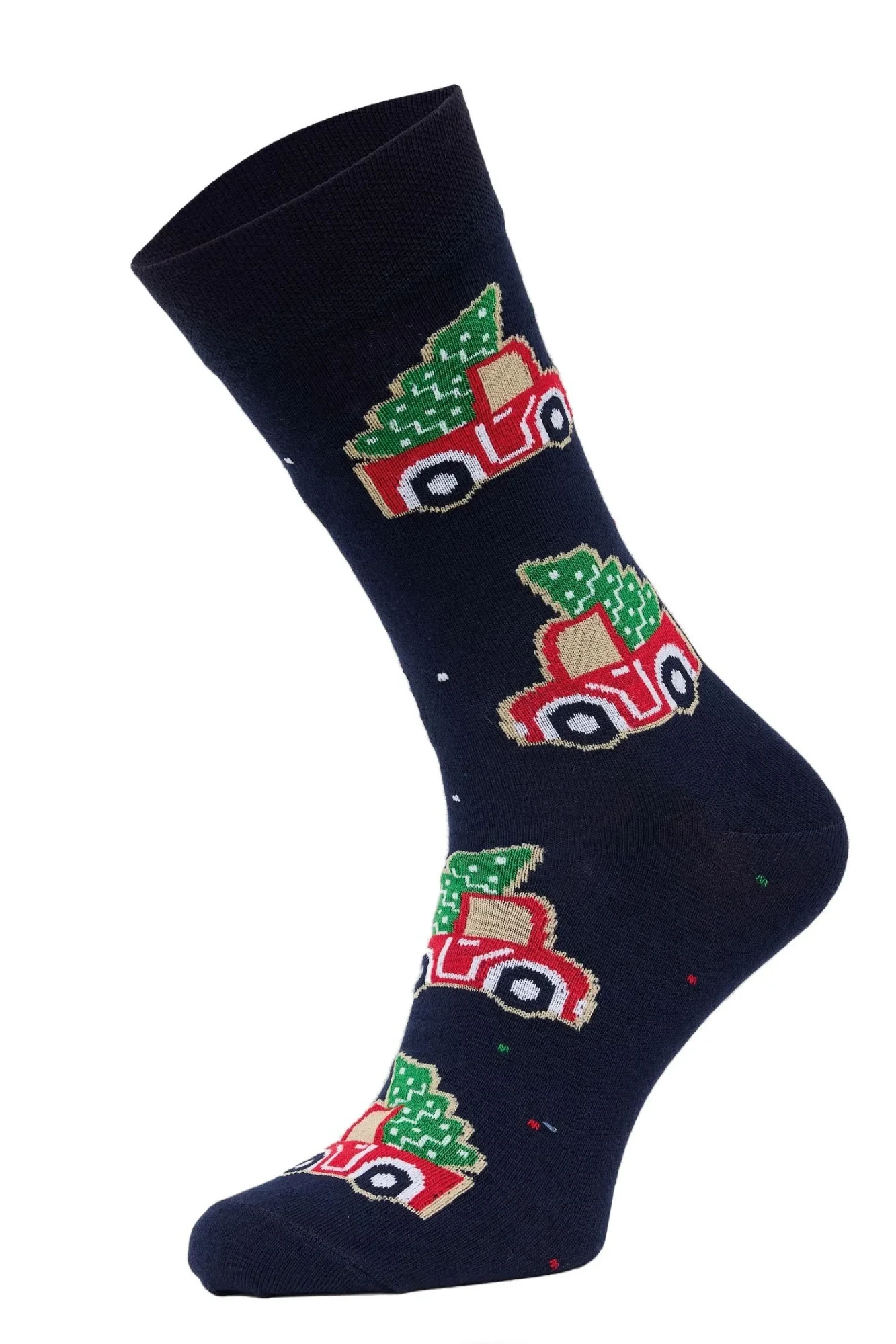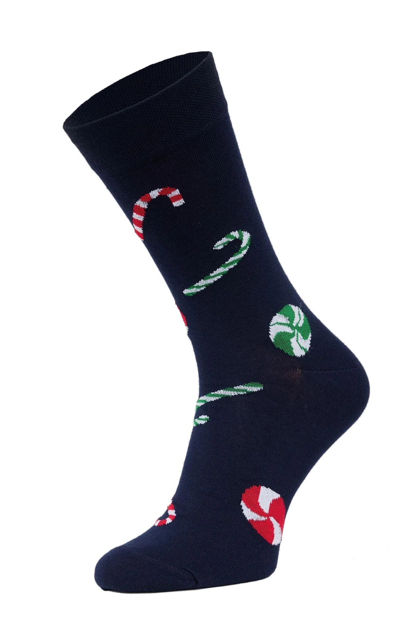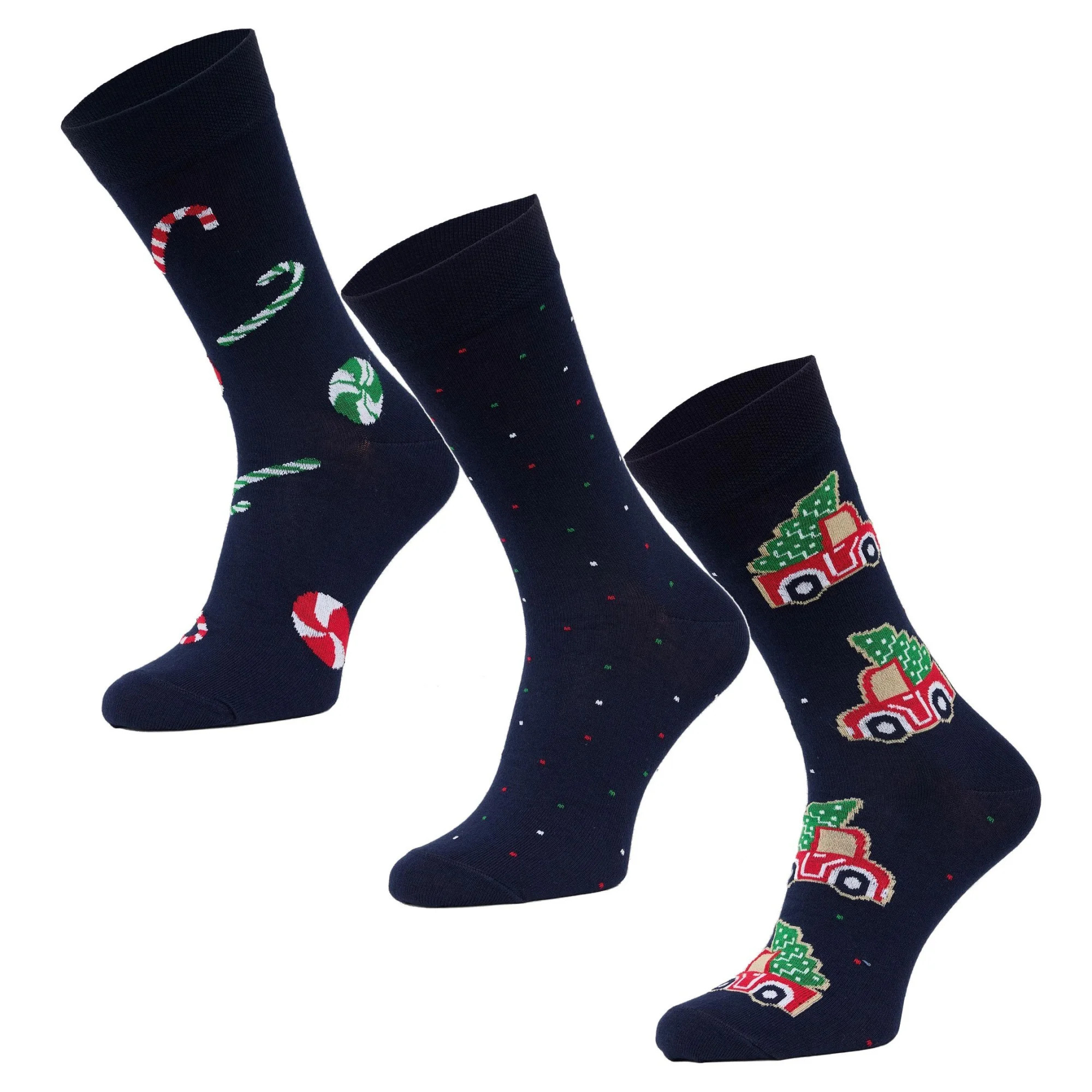 Pánské ponožky A63 Premium CORNETTE - tmavě modrá barva - z vysoce jakostní bavlny - 3 kusy různých vzorů - ploché švy - netlačí - vánoční kolekce