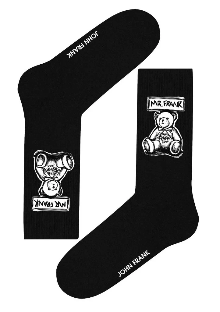 Pánské sportovní ponožky JOHN FRANK jsou vyrobeny z velice příjemného modalu. Ponožky jsou pohodlné, netáhnoucí a dobře se formující kolem nohy. Ponožky jsou prodyšné a v horní části ukončené netáhnoucím úzkým lemem. Z vnější strany je obrázek medvídka. Velikost ponožek je univerzální, a to od velikosti 40 až po velikost 45.