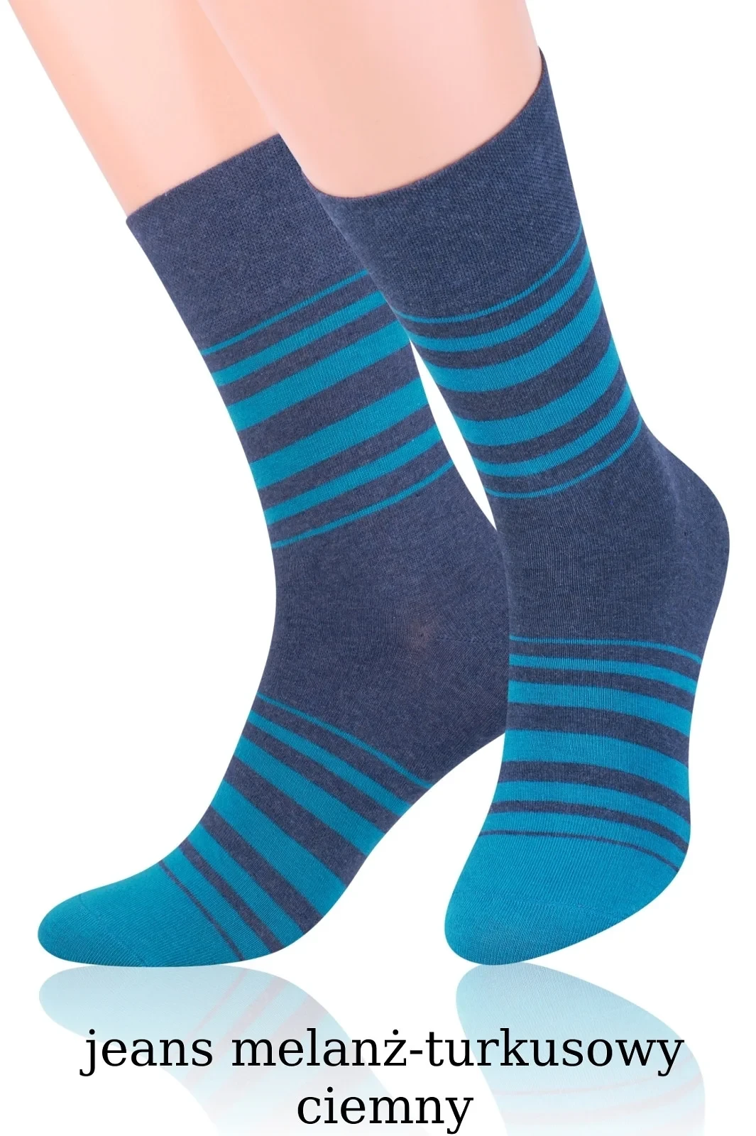 Ponožky jsou vyrobené z velmi kvalitní bavlny (80 %) s přídavkem pružných přízí. Model má lem, který při nošení netlačí.