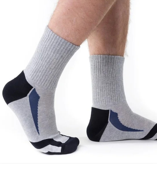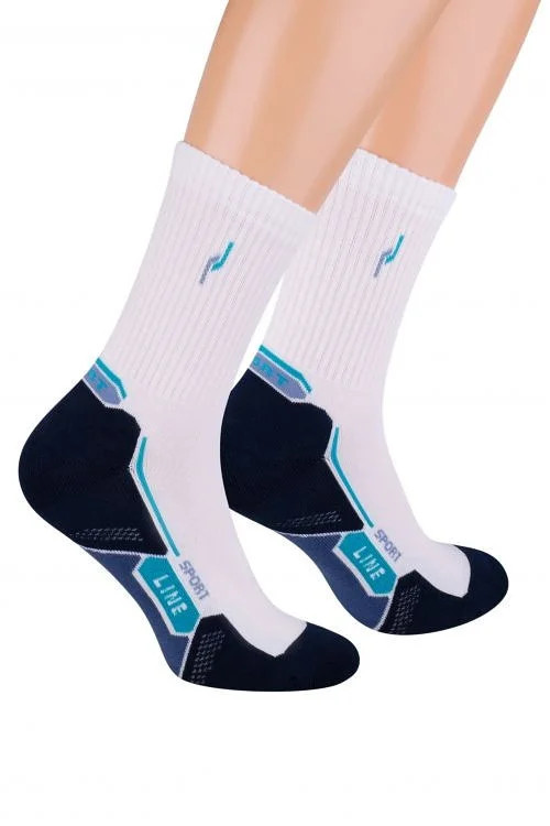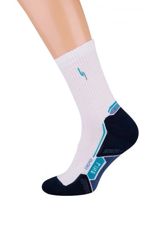 Sportovní ponožky, které jsou vyrobené z bavlny s přídavkem lycry.