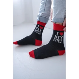 Pánské bavlněné ponožky s nápisem I LOVE MY GIRLFRIEND jsou originálním a humorem naplněným doplňkem, který se skvěle hodí na každý den. Měkké, pohodlné a příjemné na nošení, zajišťují pohodlí po celý den. Výrazný nápis jim dodává charakter a je skvělým nápadem na dárek.