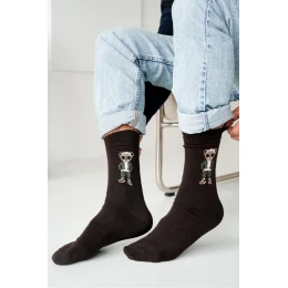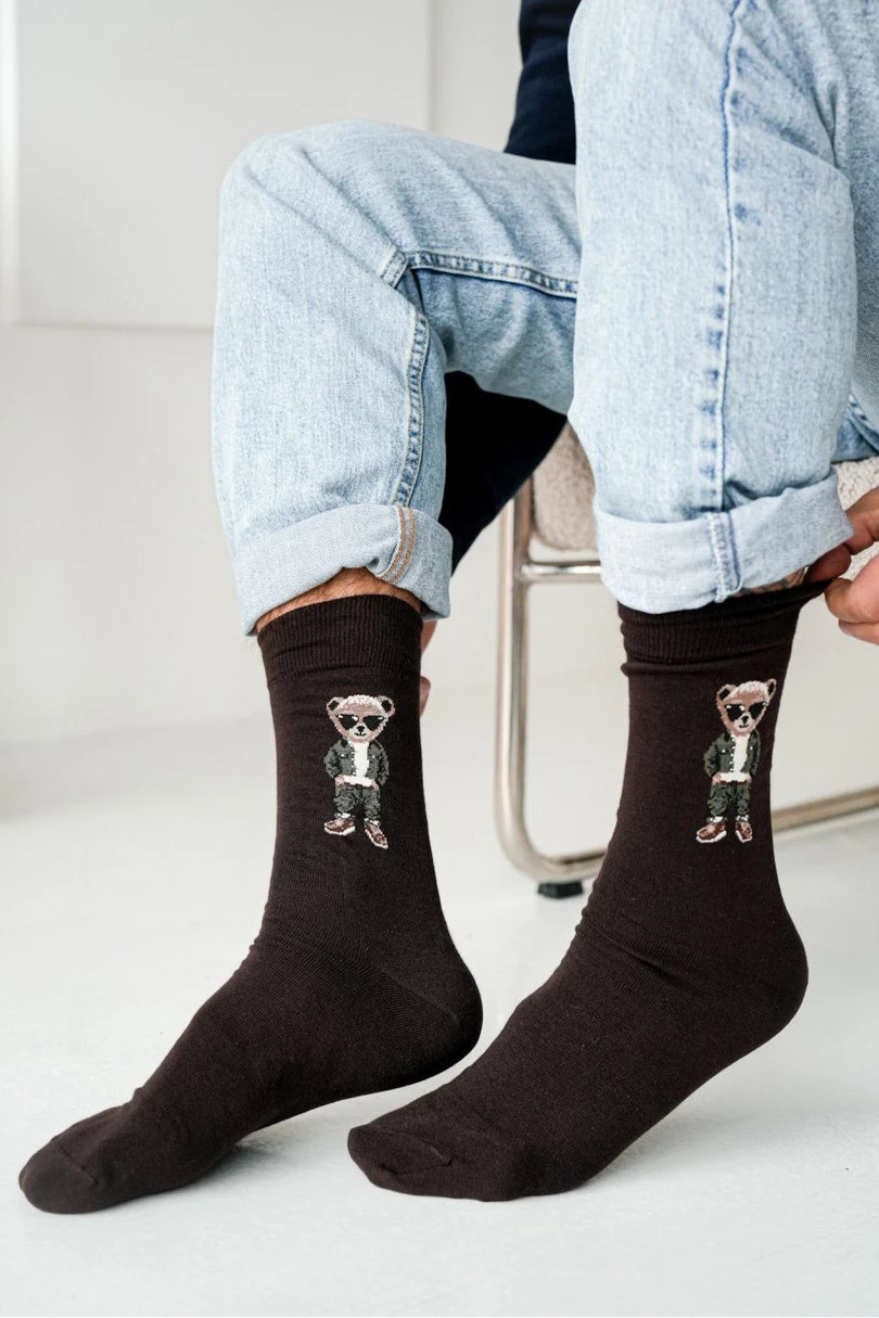 Skarpetki męskie Misiek to propozycja dla tych, którzy lubią wyróżniać się stylem i poczuciem humoru. Uroczy, wyluzowany miś zdobiący skarpetki dodaje im charakteru i sprawia, że każda stylizacja zyskuje lekki, zabawny akcent.