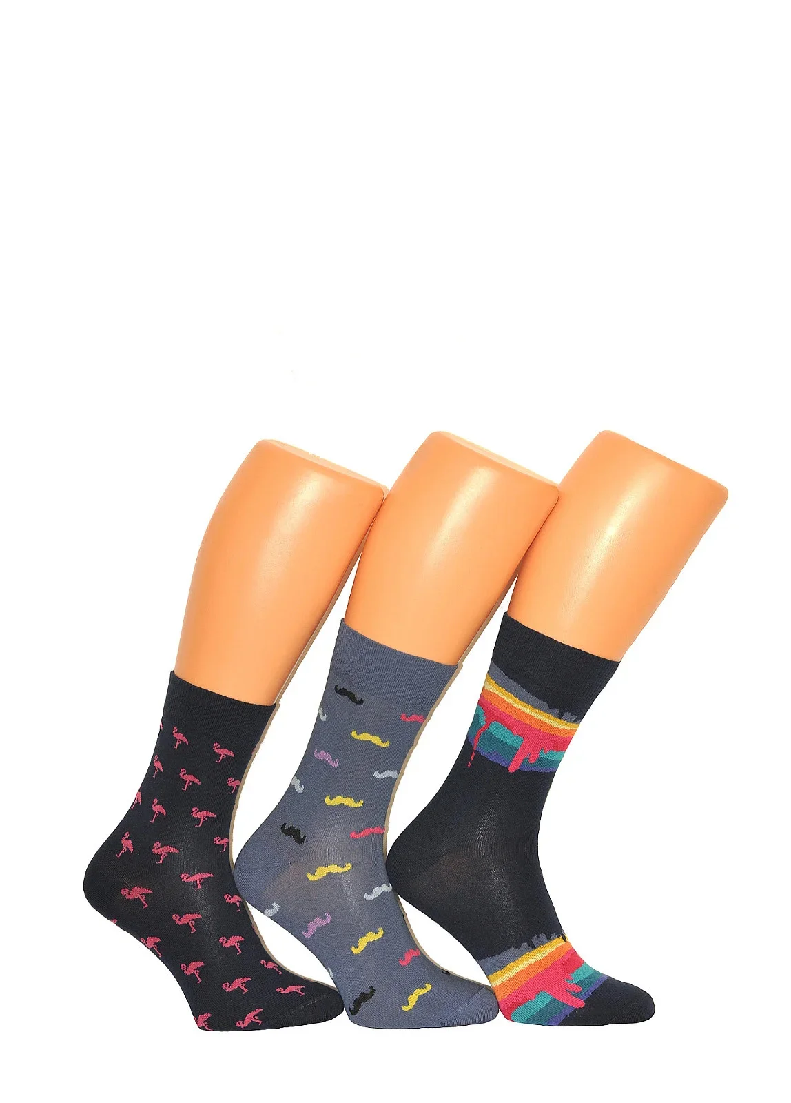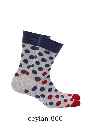 Vzory s puntíky a pruhy. Plochý šev, netlačící lem. V barvách: šedá, černá, tmavošedá, jeans, béžová, zelená, oranžová - náhodný výběr.