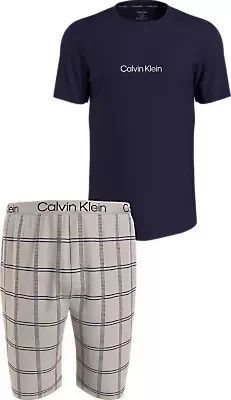 Pánské pyžamo 000NM2183E O1M tm. modré s béžovou - Calvin Klein