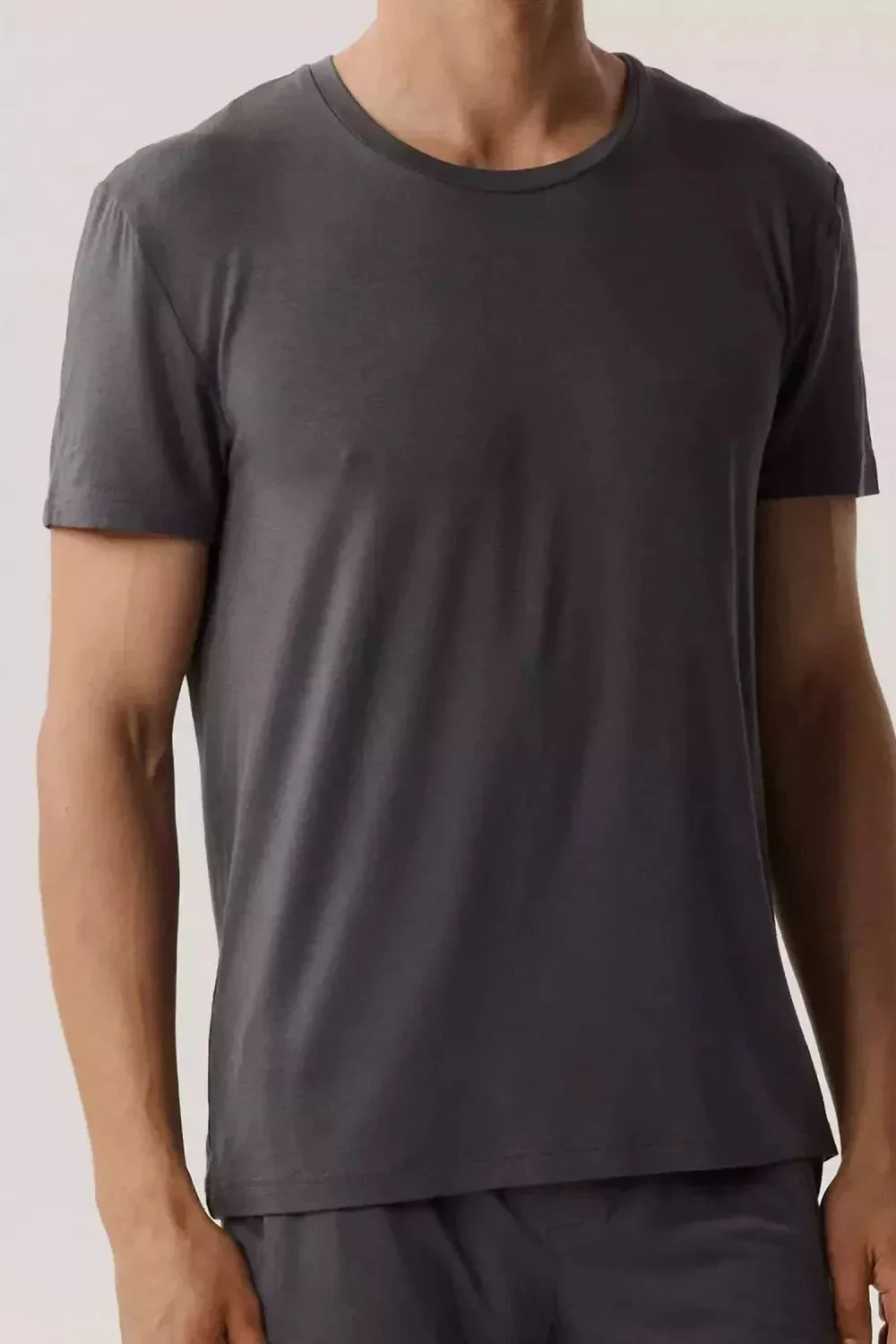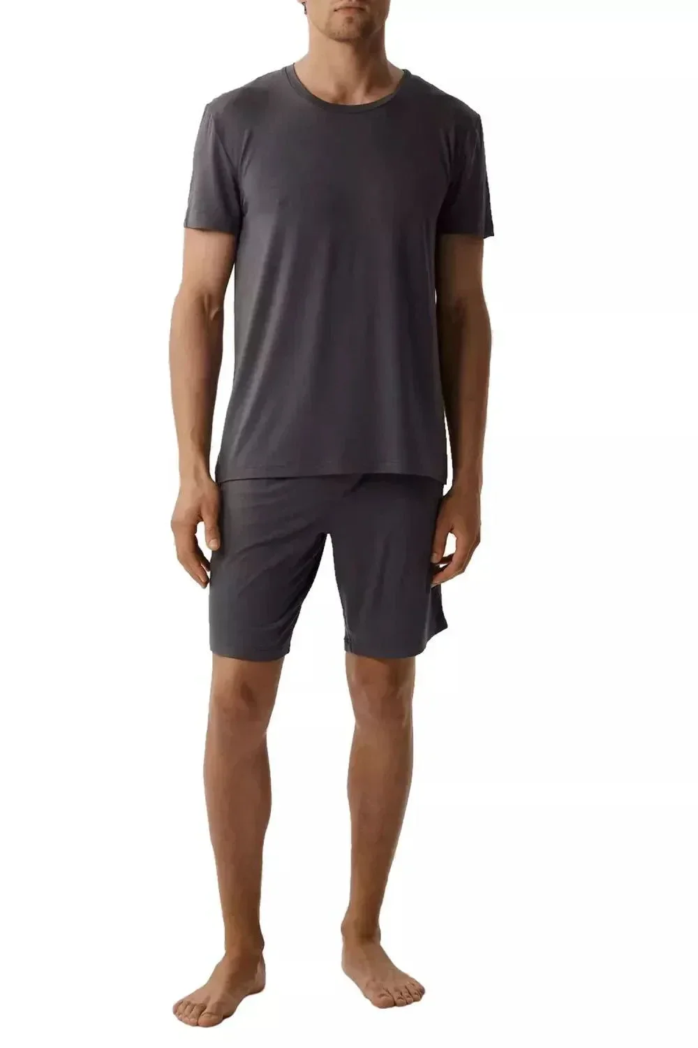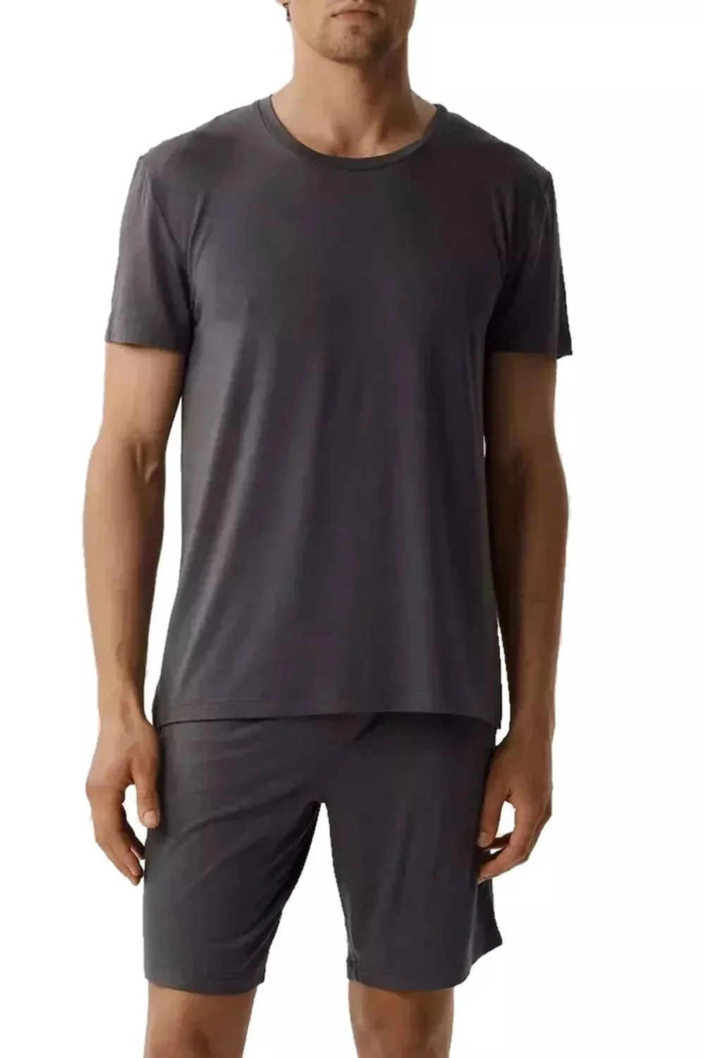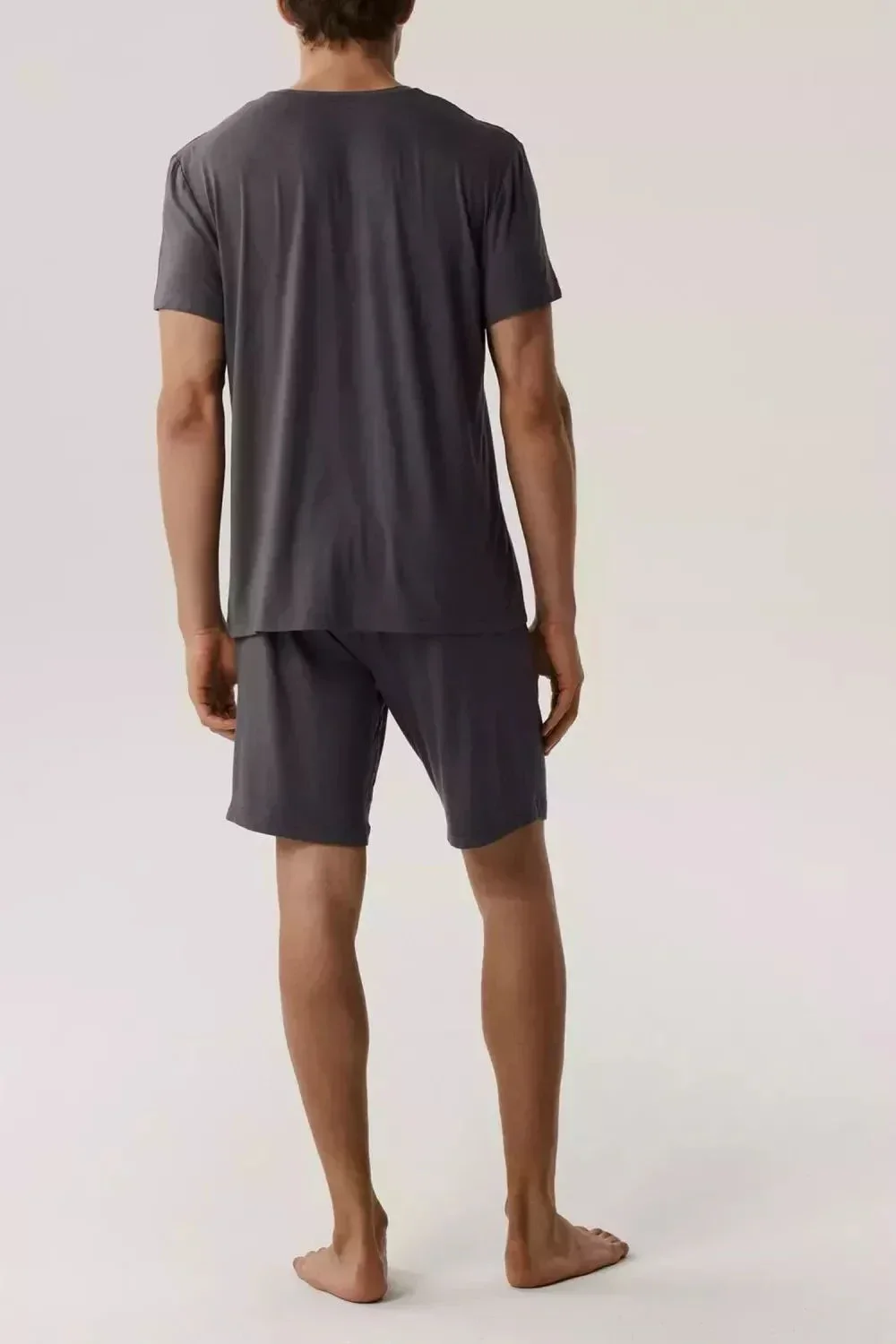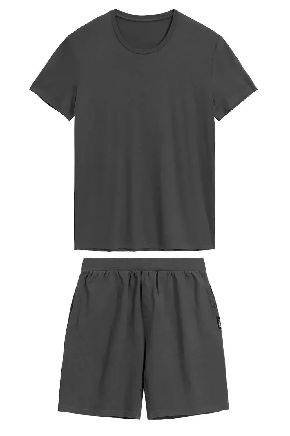 Pánské pyžamo 005 grey Atlantic - z vysoce jakostní viskózy - šedé tričko s krátkými rukávy zakončené manžetou - kraťasy šedé barvy - v pase širší guma