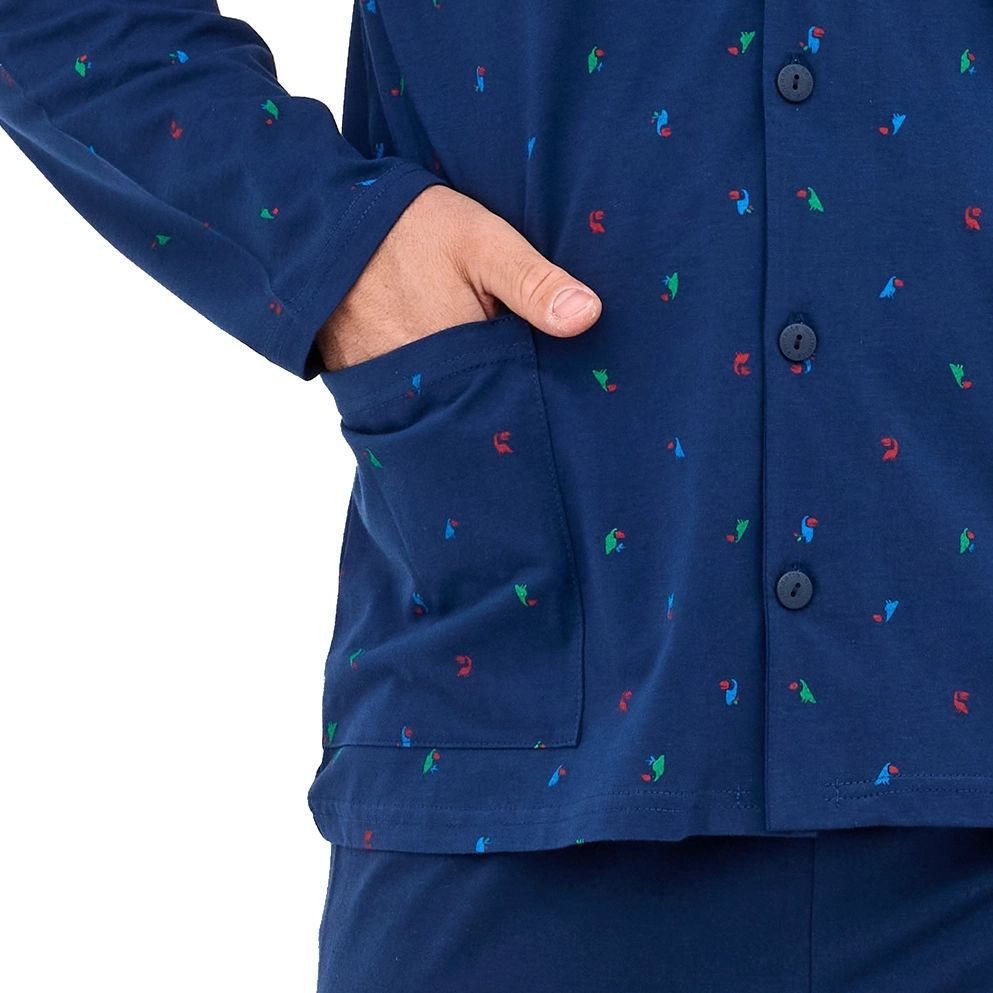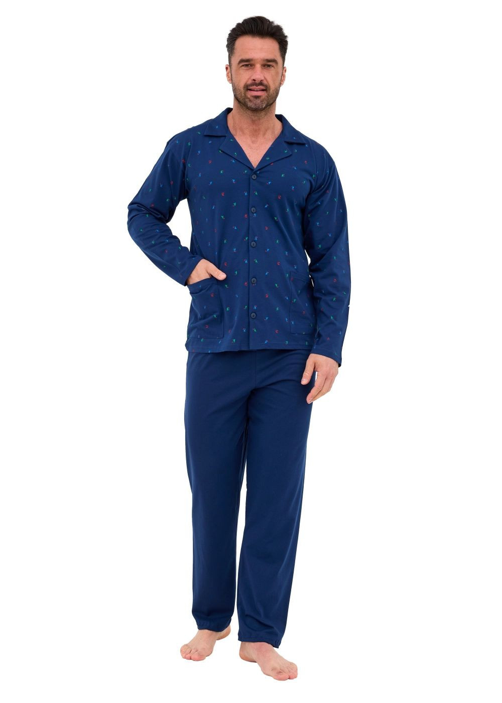 Pánské pyžamo 114/79 CORNETTE - z vysoce jakostní bavlny - vzorovaná košile s dlouhými rukávy a kapsami - zapínání na knoflíky - pohodlné tmavě modré dlouhé kalhoty